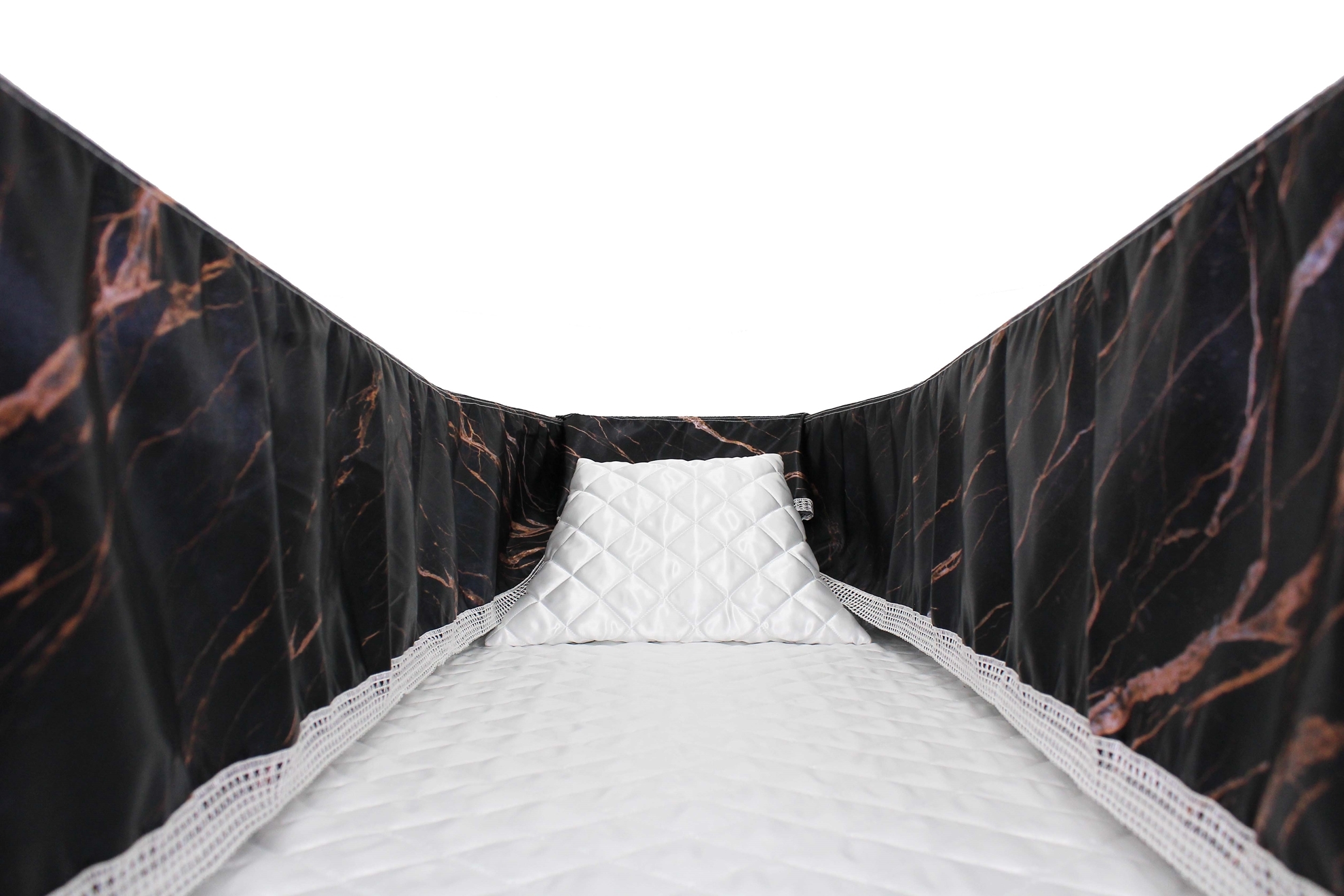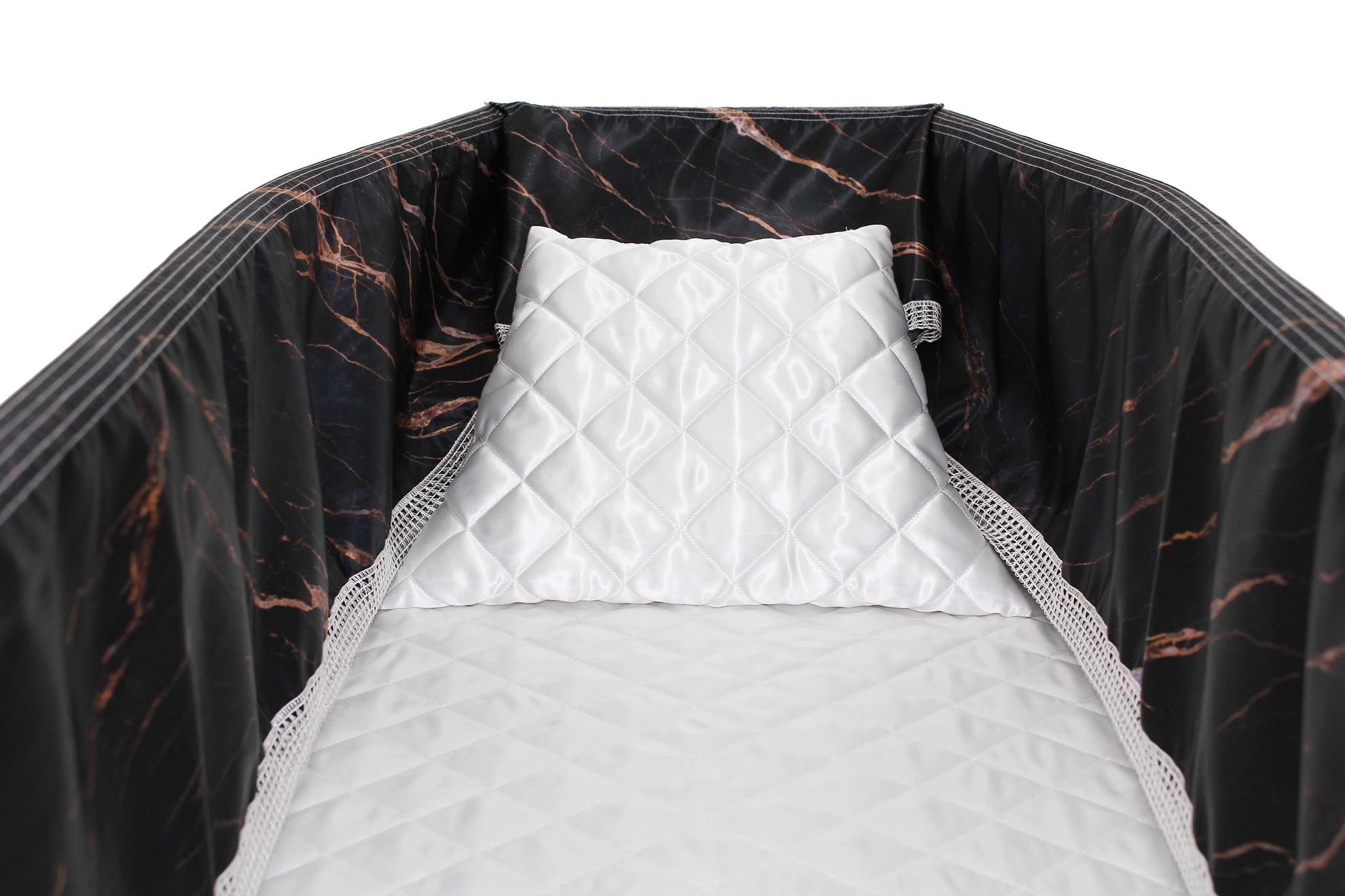 12-inch Printed Satin frill to be attached to the lip of the coffin/casket. Please note the image shows a mattress and pillow which are NOT included.
