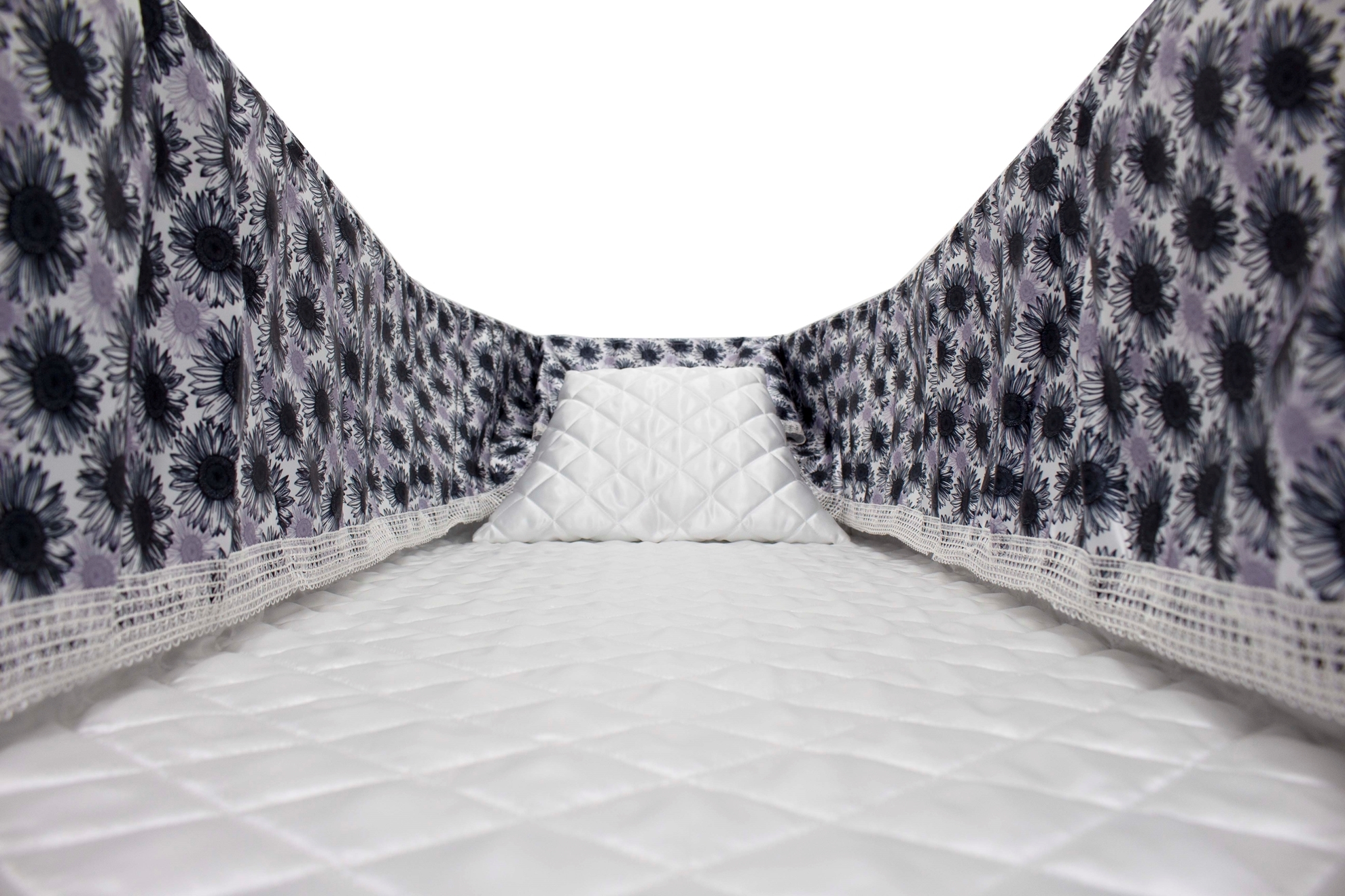 12-inch Printed Satin frill to be attached to the lip of the coffin/casket. Please note the image shows a mattress and pillow which are NOT included.