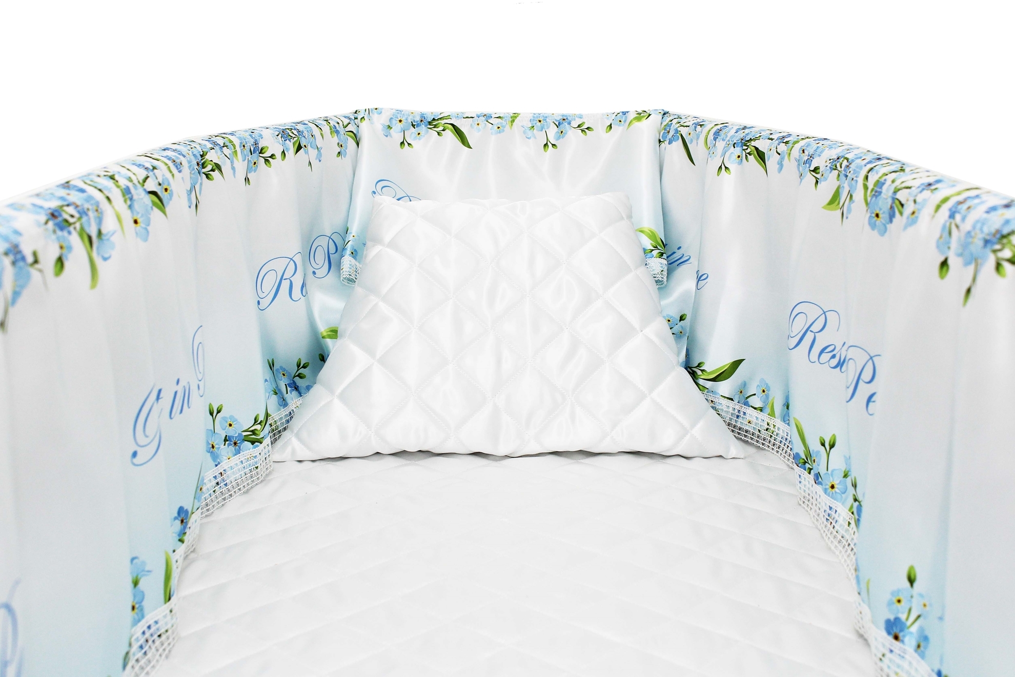 Luxury Satin 18-inch 2-way frill consisting of a 12-inch internal frill with an additional 6-inch exterior frill. The chosen design will be printed on the 18" 2-Way Frill. Please note the image shows a mattress and a pillow which are NOT included. Image is to illustrate style of Interior Only.