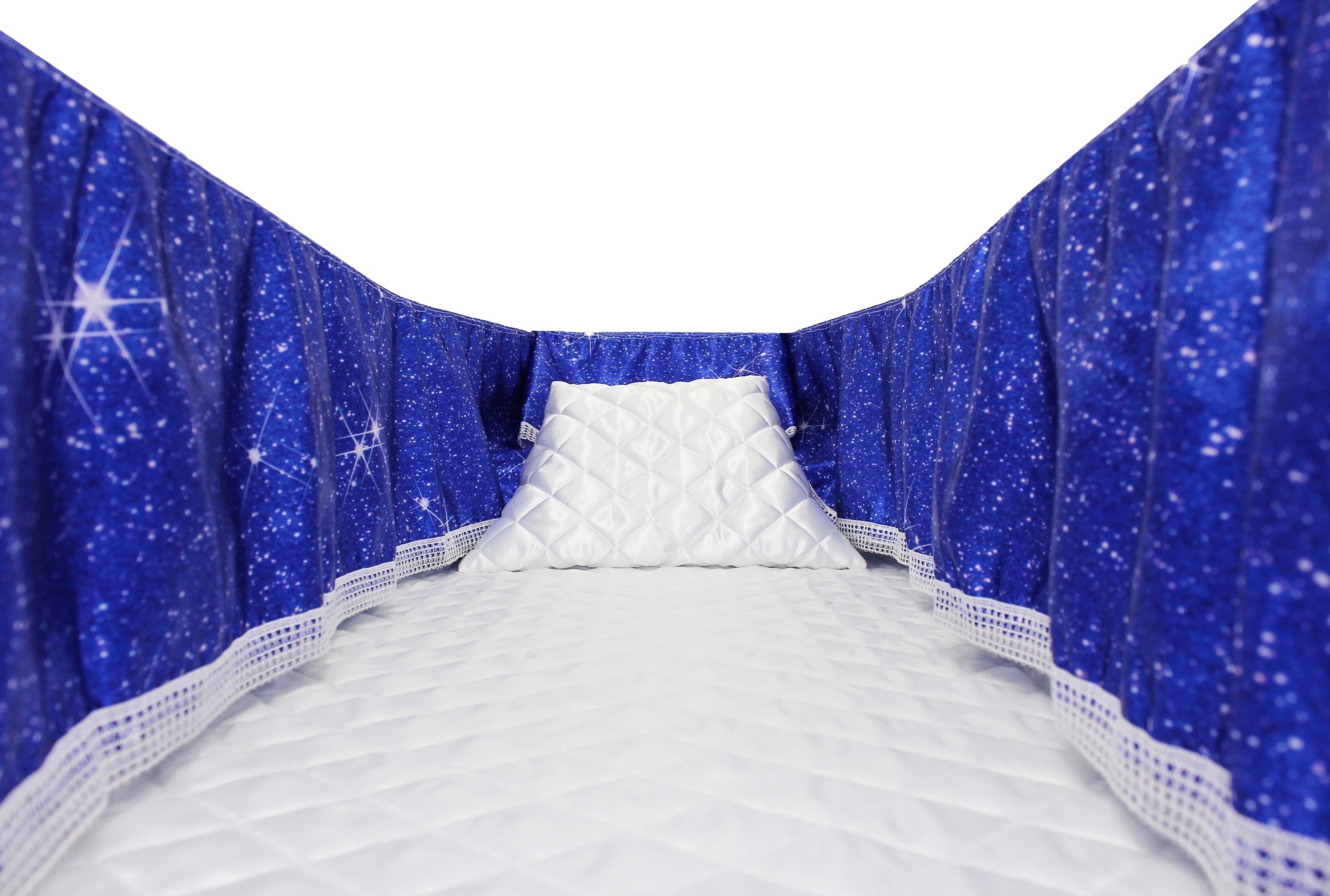 12-inch Printed Satin frill to be attached to the lip of the coffin/casket. Please note the image shows a mattress and pillow which are NOT included.