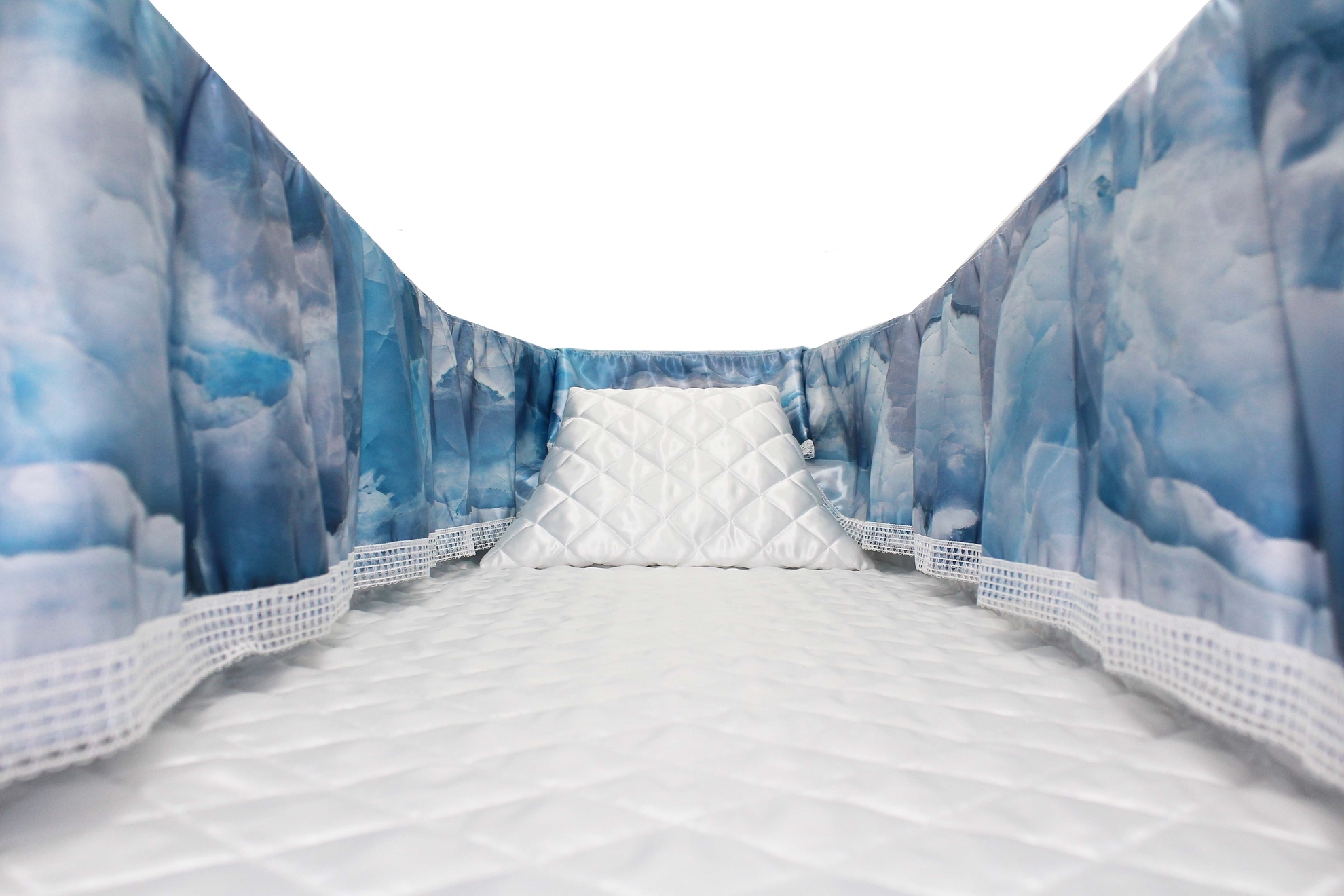 12-inch Printed Satin frill to be attached to the lip of the coffin/casket. Please note the image shows a mattress and pillow which are NOT included.
