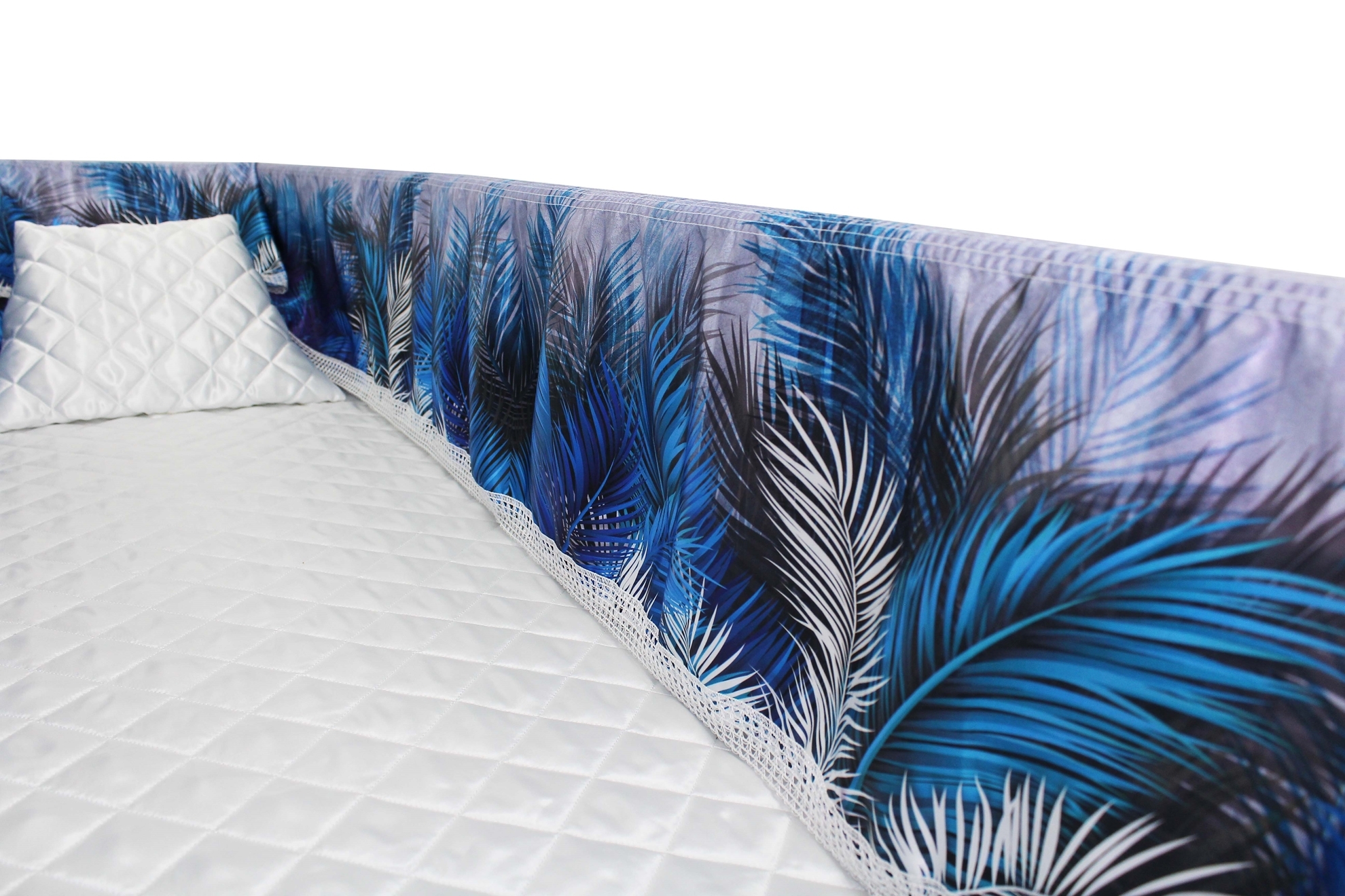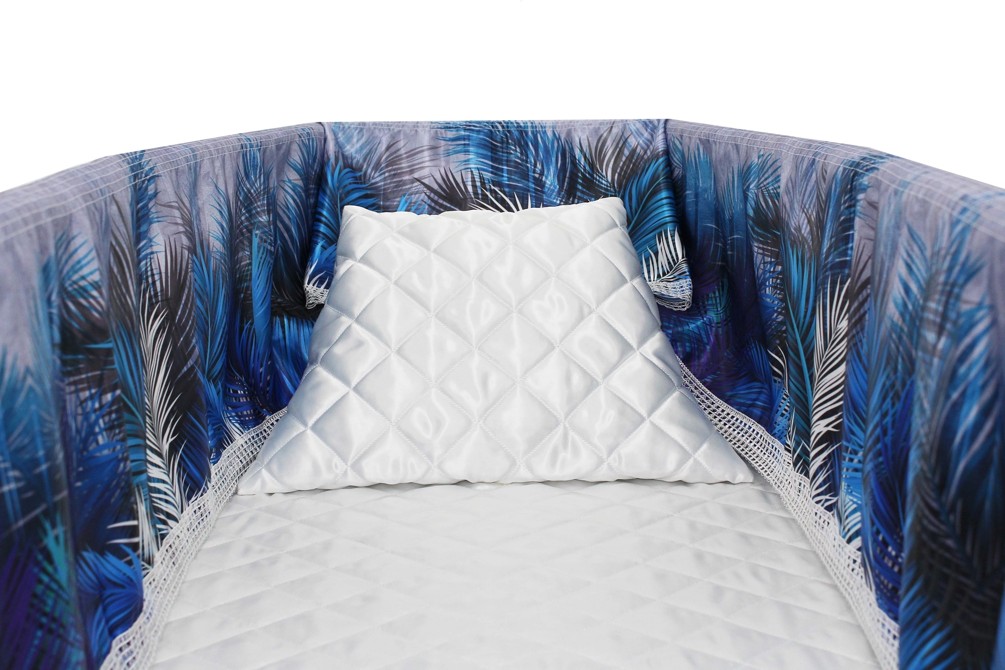 Luxury Satin 18-inch 2-way frill consisting of a 12-inch internal frill with an additional 6-inch exterior frill. The chosen design will be printed on the 18" 2-Way Frill. Please note the image shows a mattress and a pillow which are NOT included. Image is to illustrate style of Interior Only.