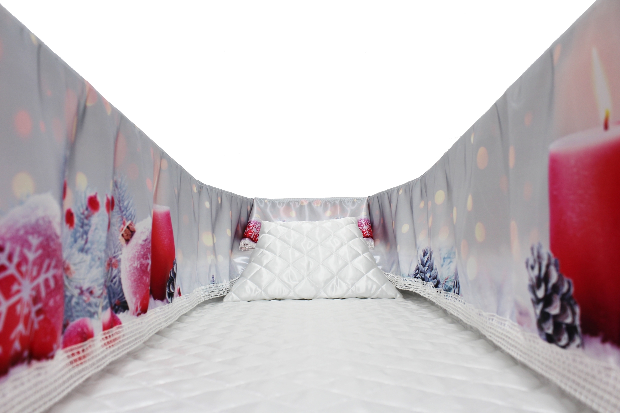 12-inch Printed Satin frill to be attached to the lip of the coffin/casket. Please note the image shows a mattress and pillow which are NOT included.