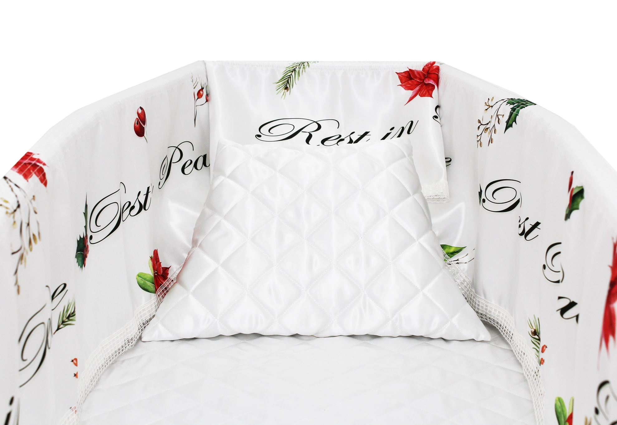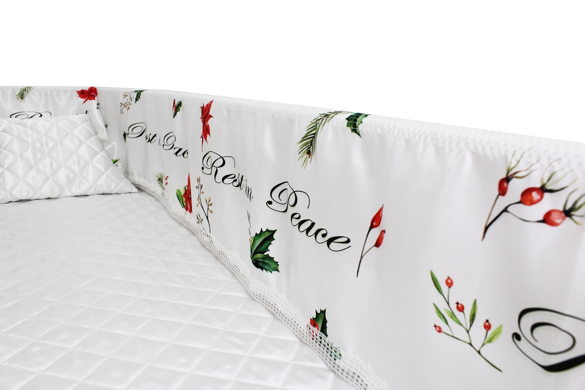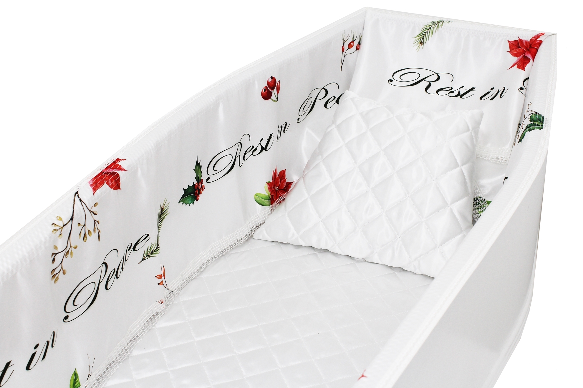 12-inch Printed Satin frill to be attached to the lip of the coffin/casket. Please note the image shows a mattress and pillow which are NOT included.