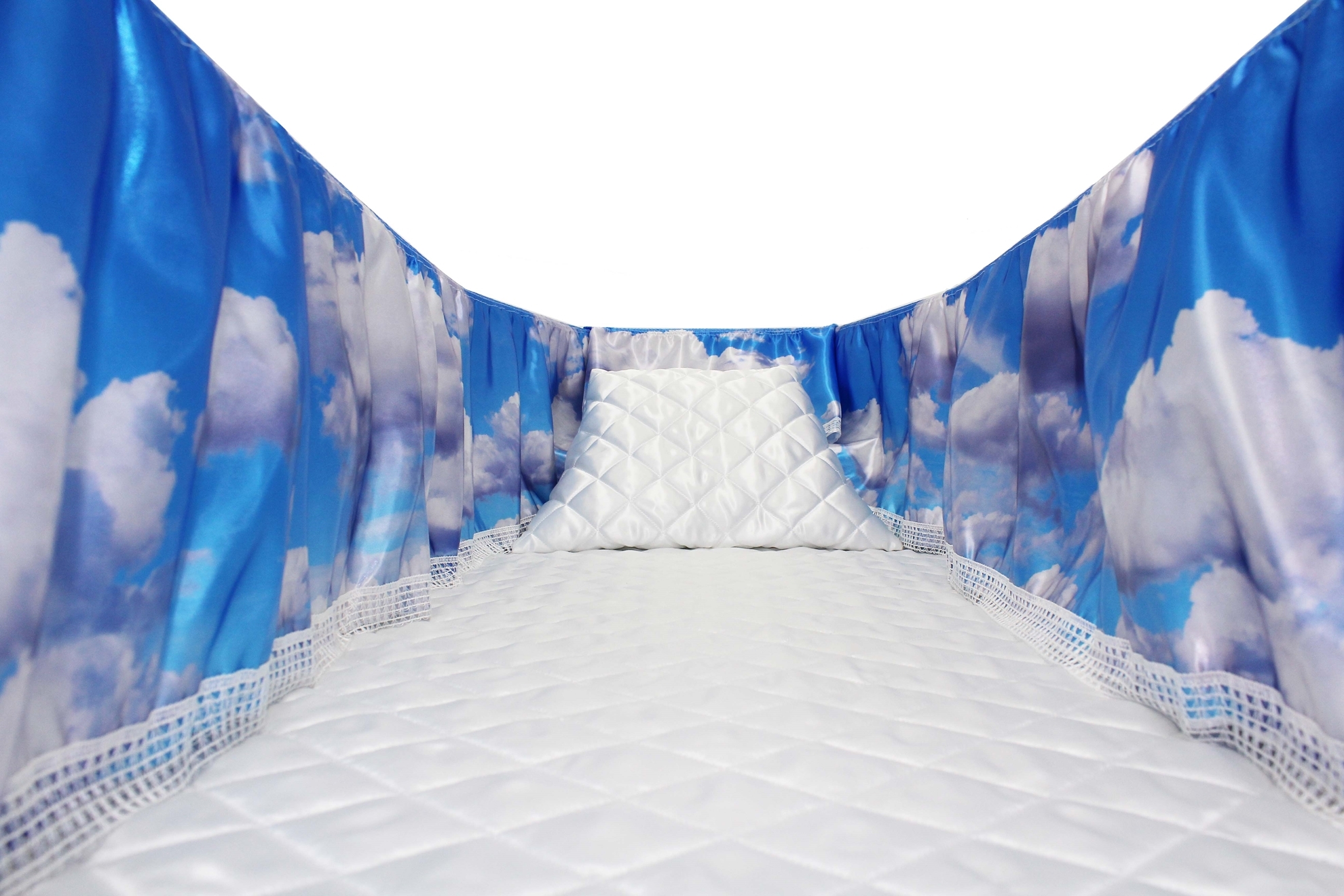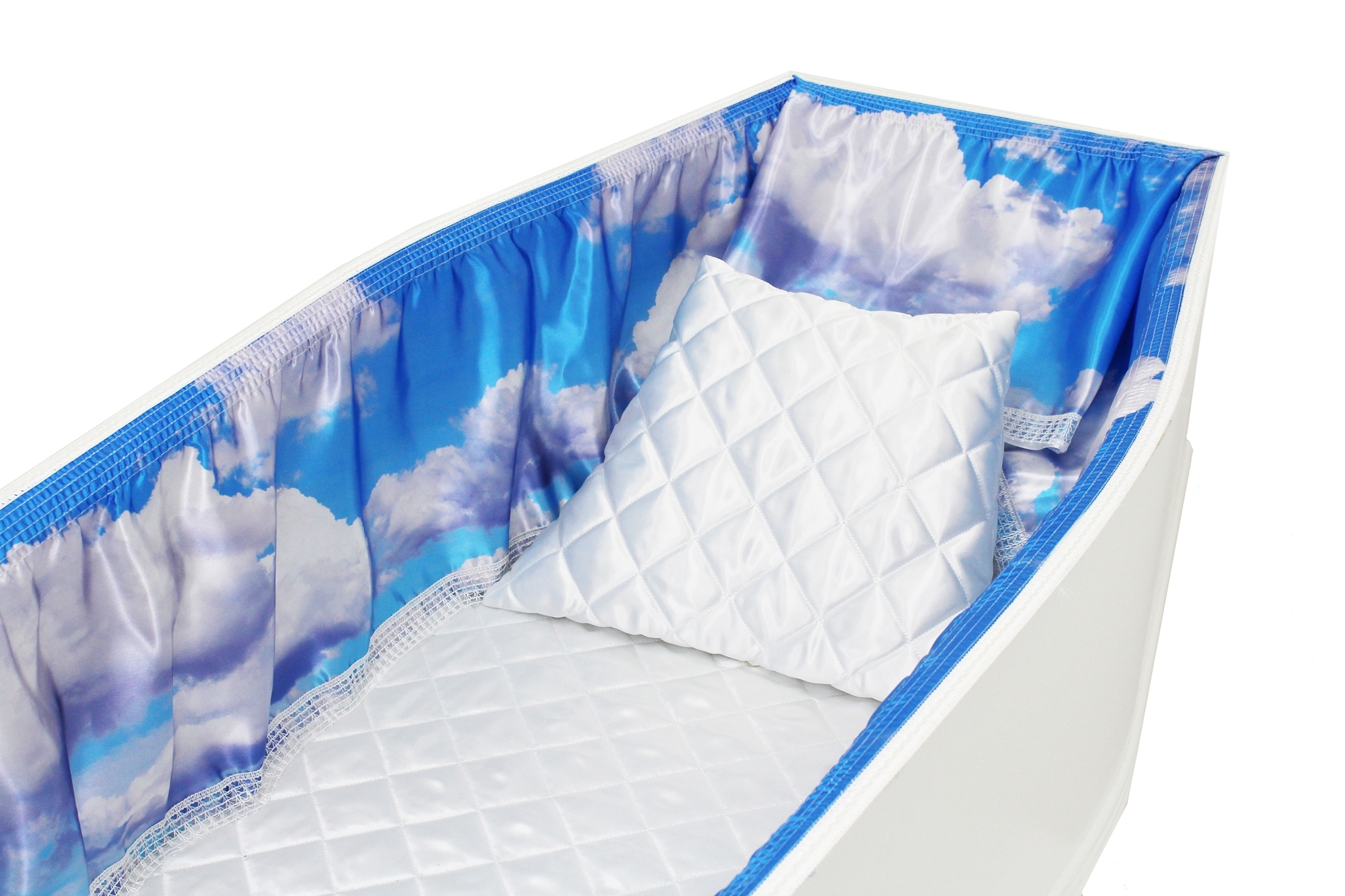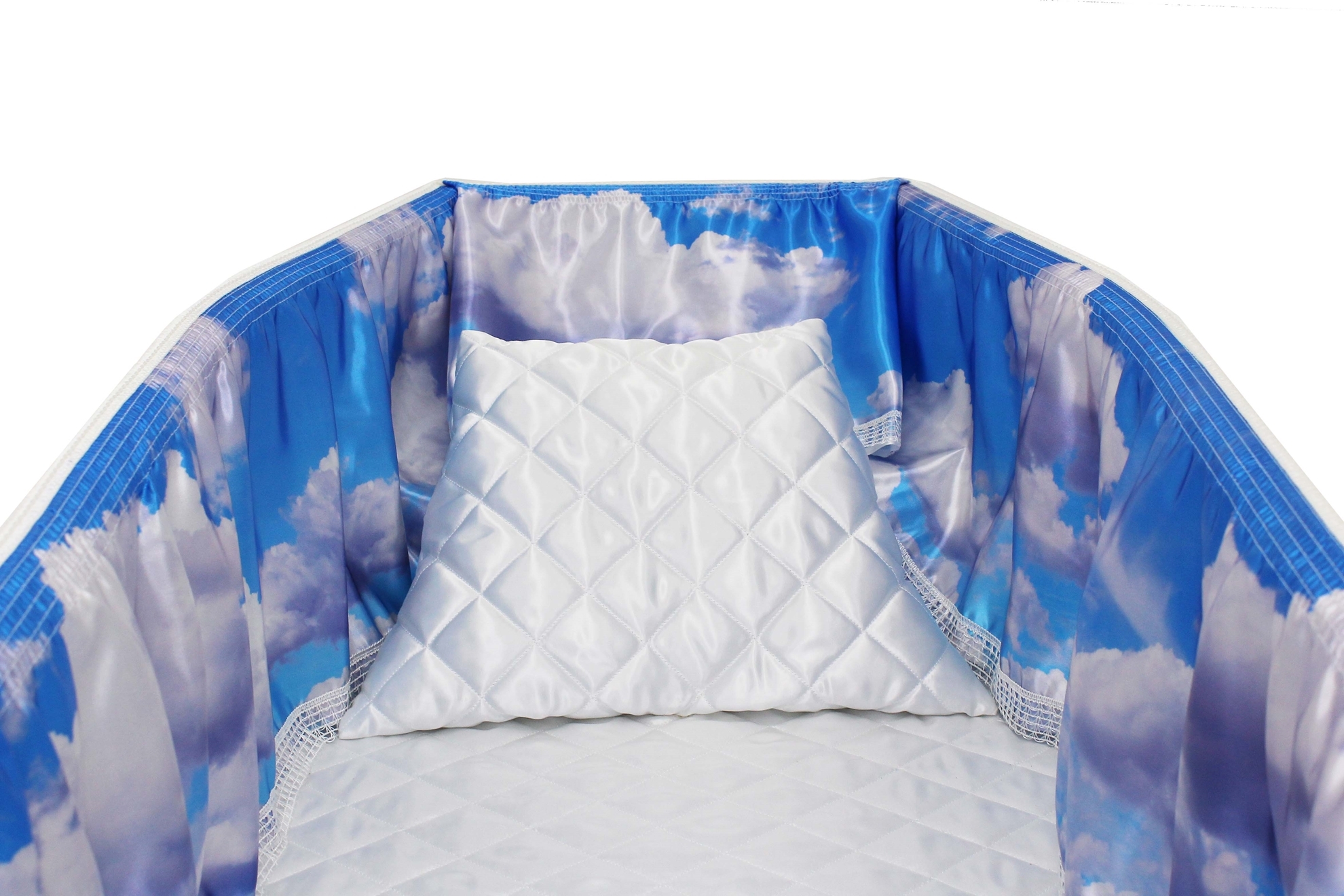 12-inch Printed Satin frill to be attached to the lip of the coffin/casket. Please note the image shows a mattress and pillow which are NOT included.