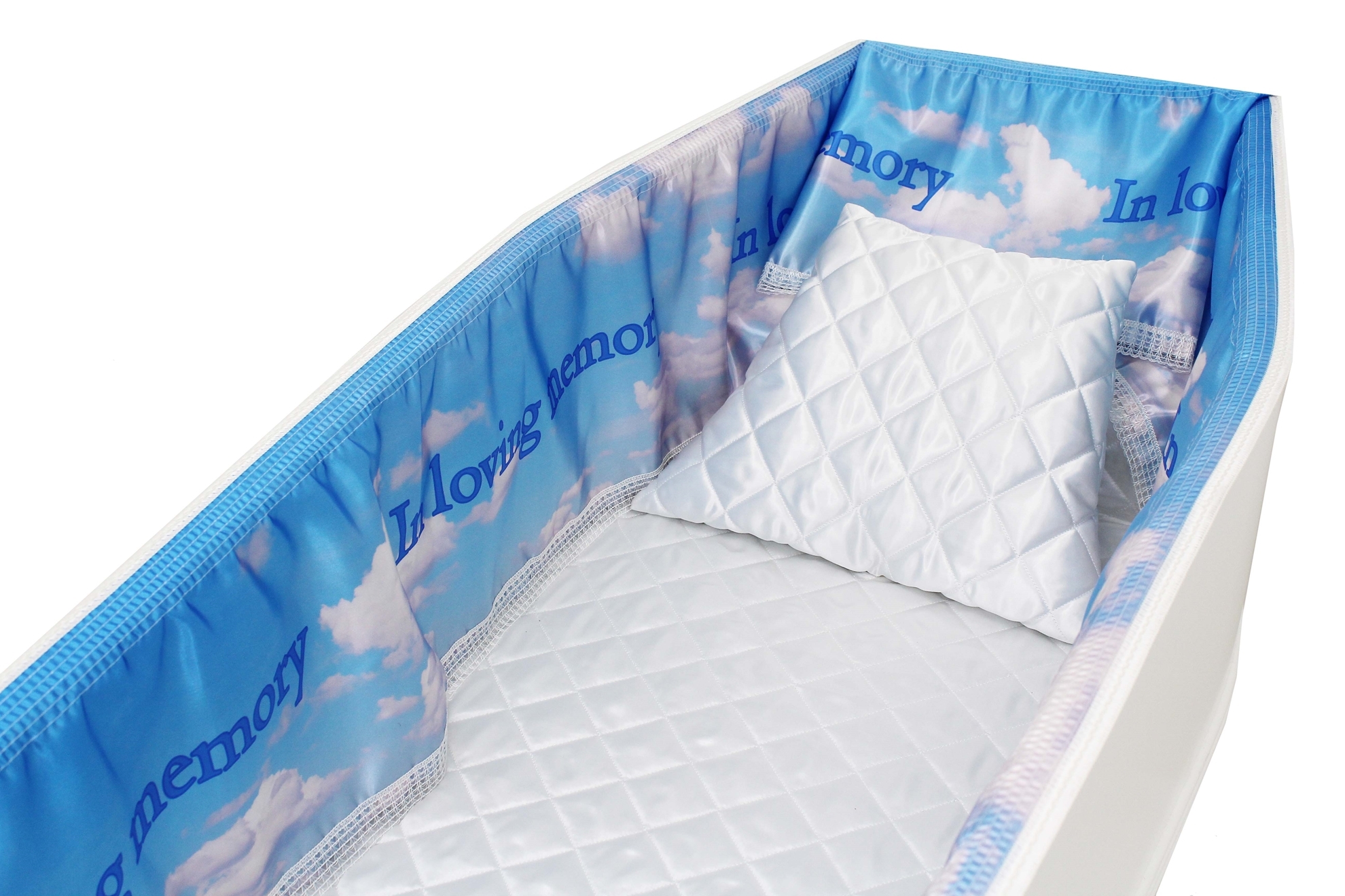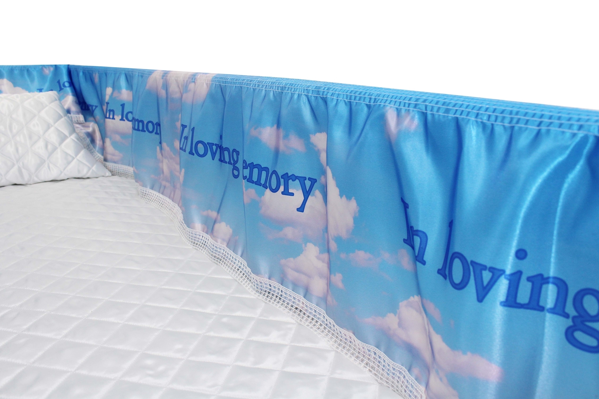 12-inch Printed Satin frill to be attached to the lip of the coffin/casket. Please note the image shows a mattress and pillow which are NOT included.