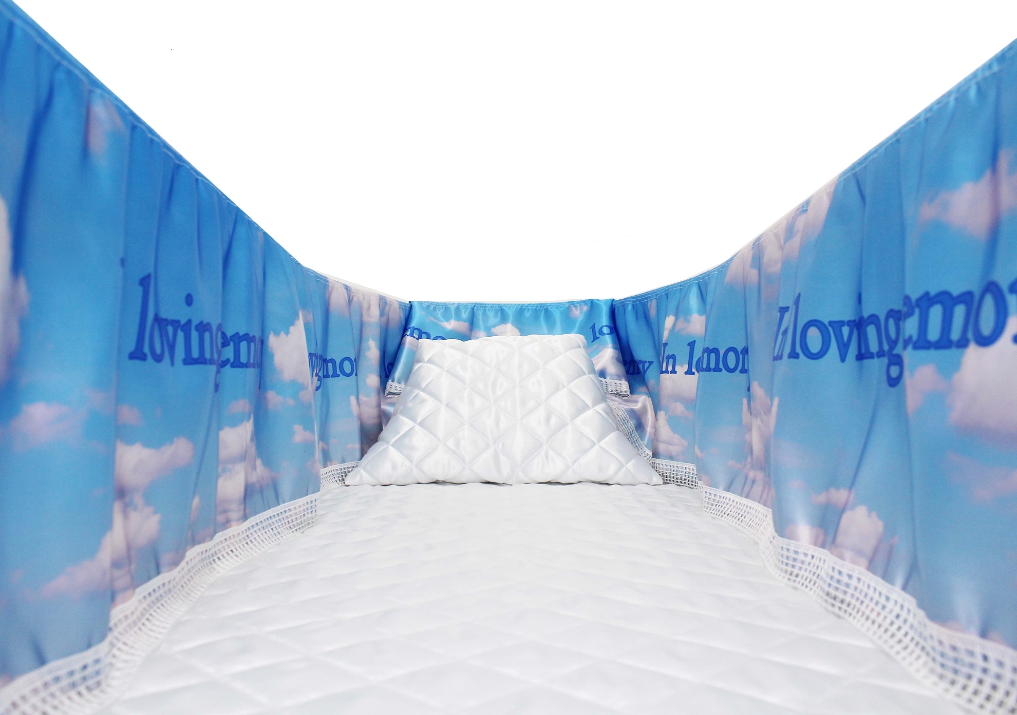 A cost effective satin elasticated all in one coffin suite. Making it quick and simple to fit. The chosen design will be printed on the Anna.