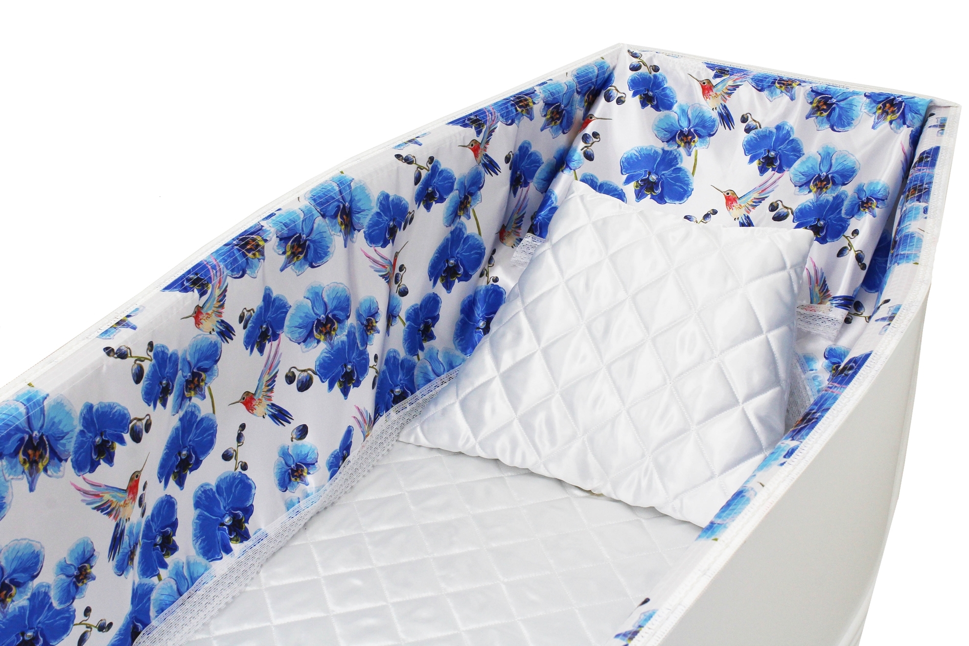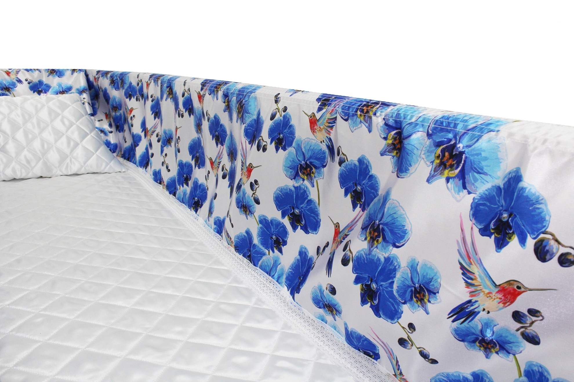 Luxury Satin 18-inch 2-way frill consisting of a 12-inch internal frill with an additional 6-inch exterior frill. The chosen design will be printed on the 18" 2-Way Frill. Please note the image shows a mattress and a pillow which are NOT included. Image is to illustrate style of Interior Only.