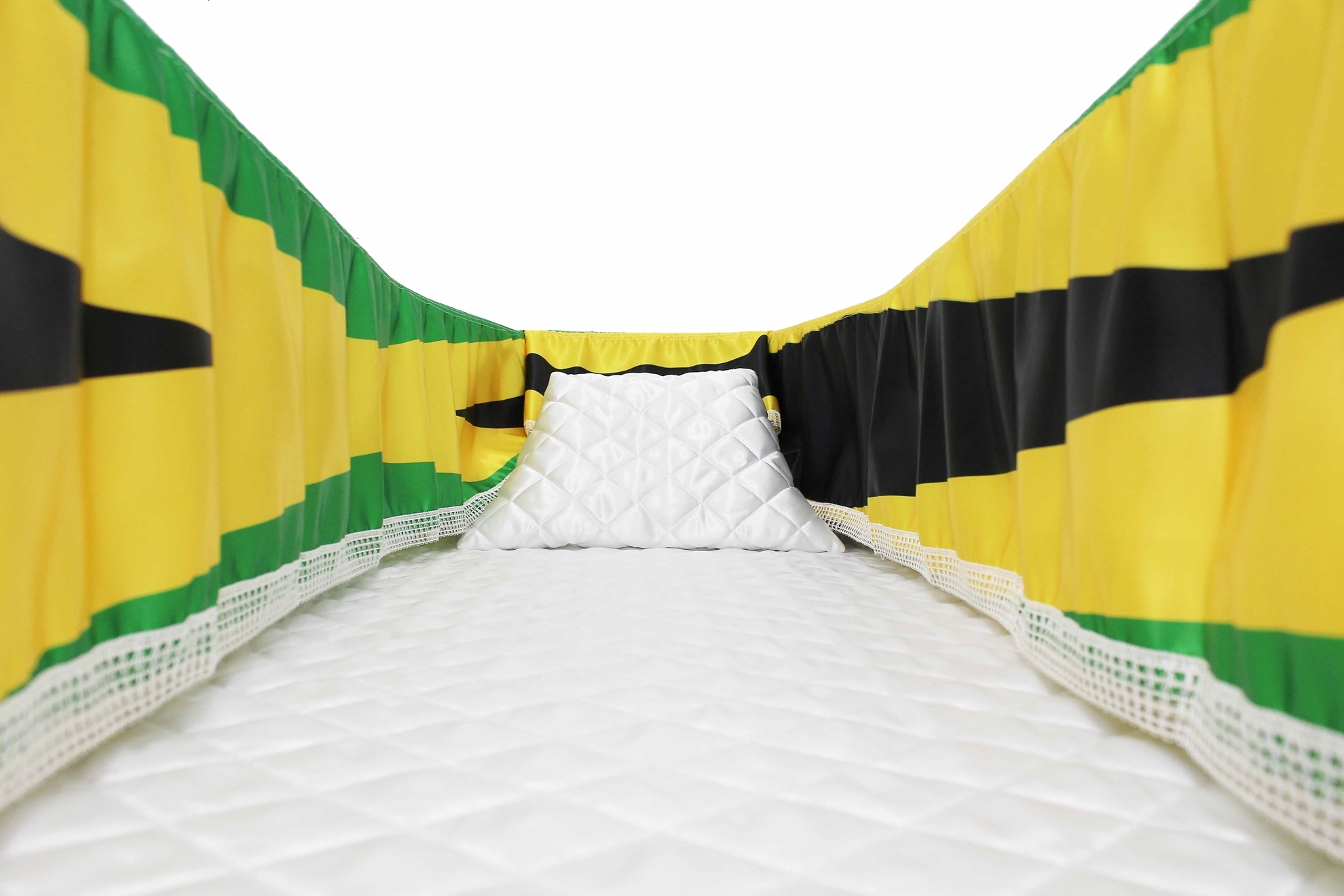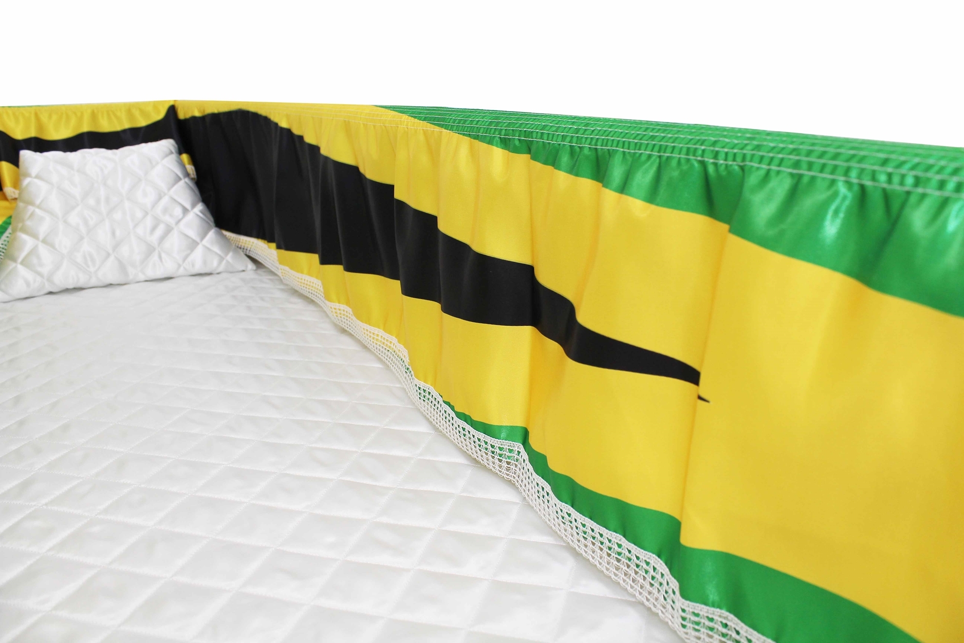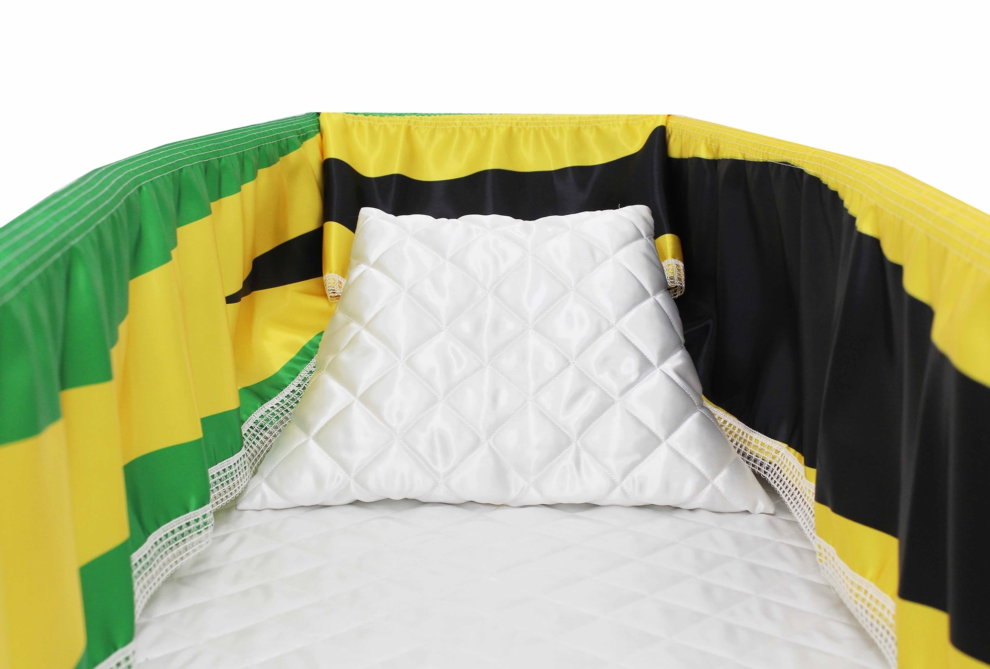 12-inch Printed Satin frill to be attached to the lip of the coffin/casket. Please note the image shows a mattress and pillow which are NOT included.