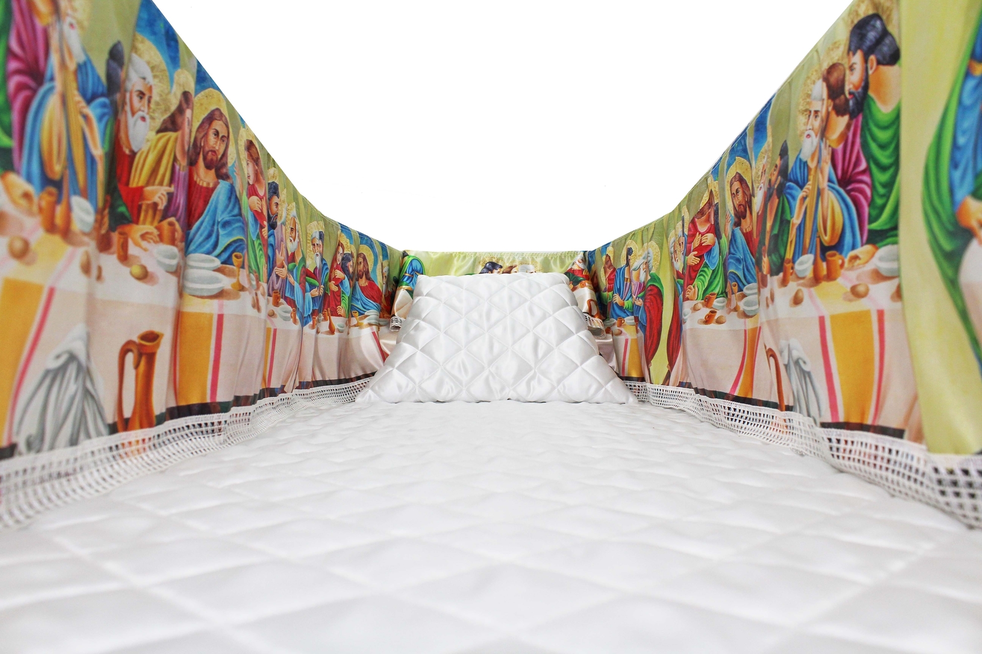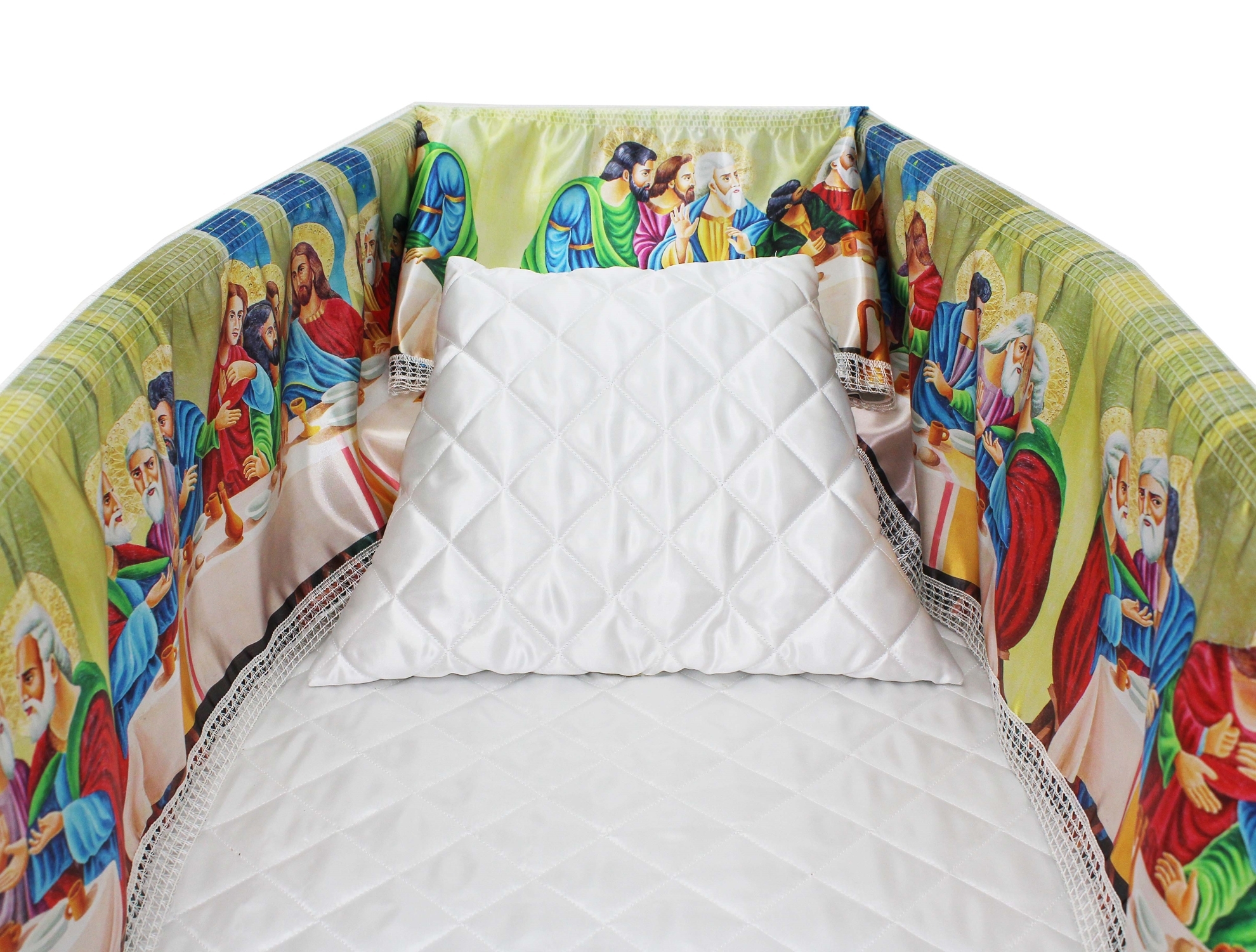 12-inch Printed Satin frill to be attached to the lip of the coffin/casket. Please note the image shows a mattress and pillow which are NOT included.