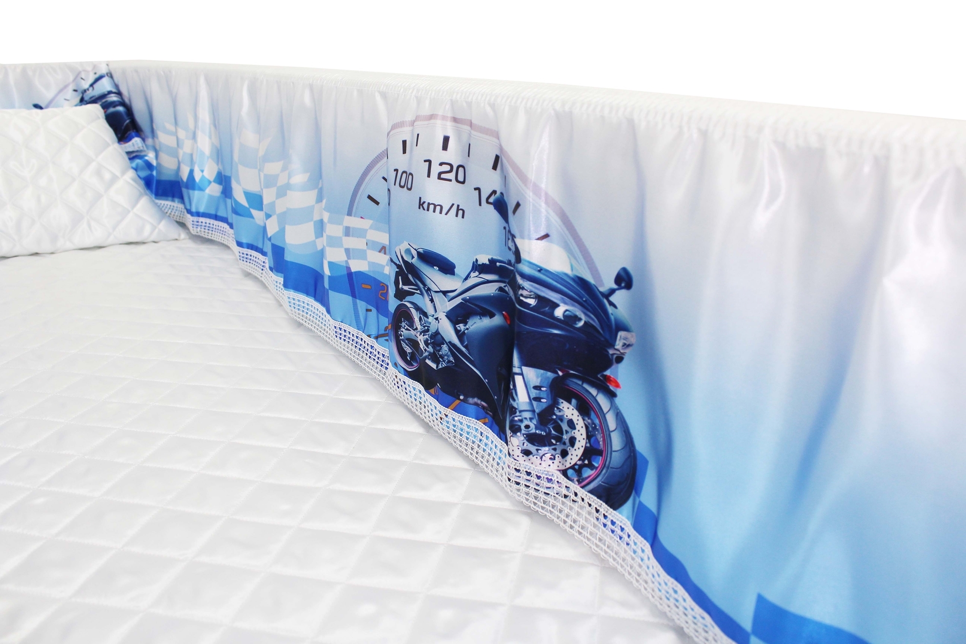Luxury Satin 18-inch 2-way frill consisting of a 12-inch internal frill with an additional 6-inch exterior frill. The chosen design will be printed on the 18" 2-Way Frill. Please note the image shows a mattress and a pillow which are NOT included. Image is to illustrate style of Interior Only.