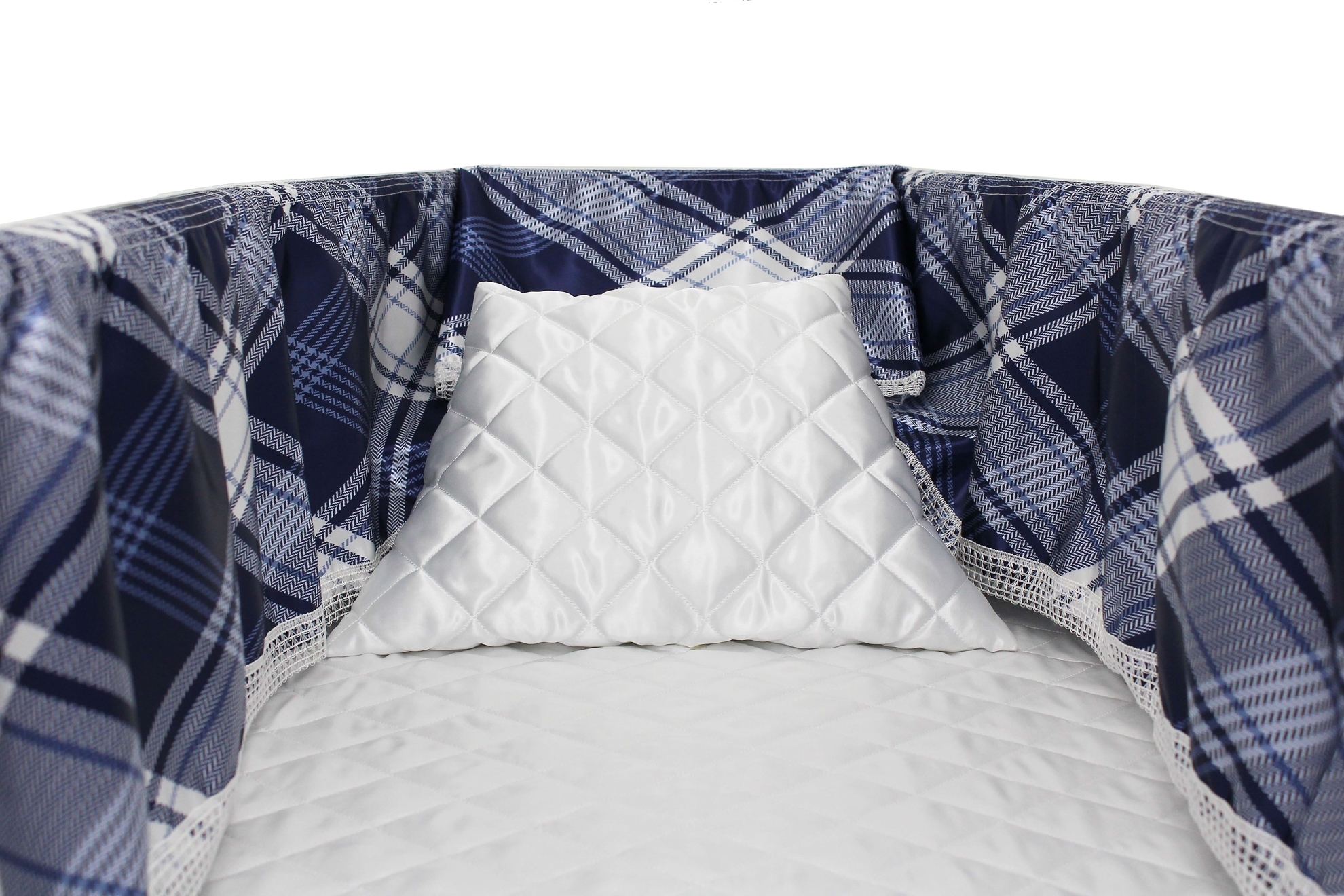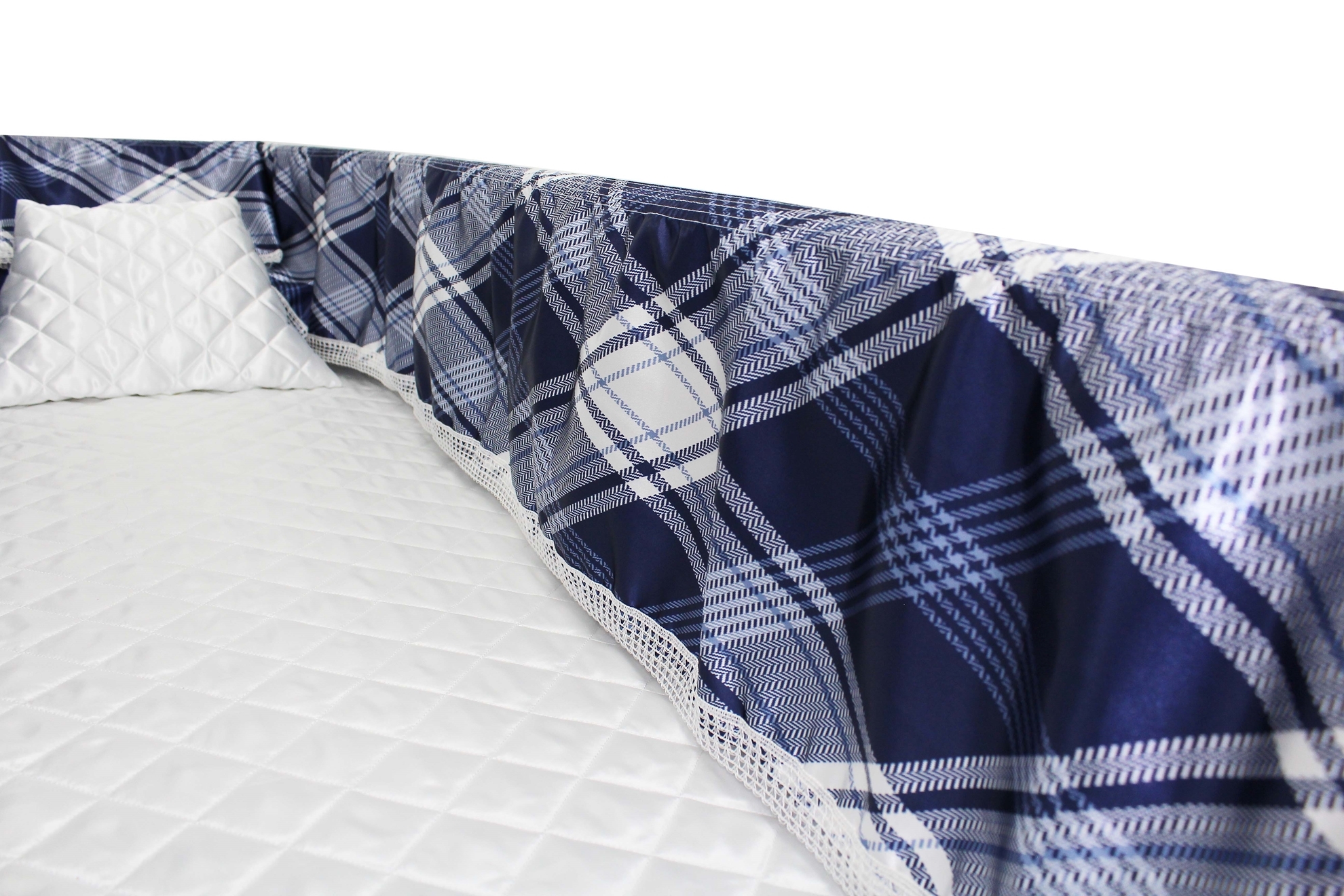 Luxury Satin 18-inch 2-way frill consisting of a 12-inch internal frill with an additional 6-inch exterior frill. The chosen design will be printed on the 18" 2-Way Frill. Please note the image shows a mattress and a pillow which are NOT included. Image is to illustrate style of Interior Only.