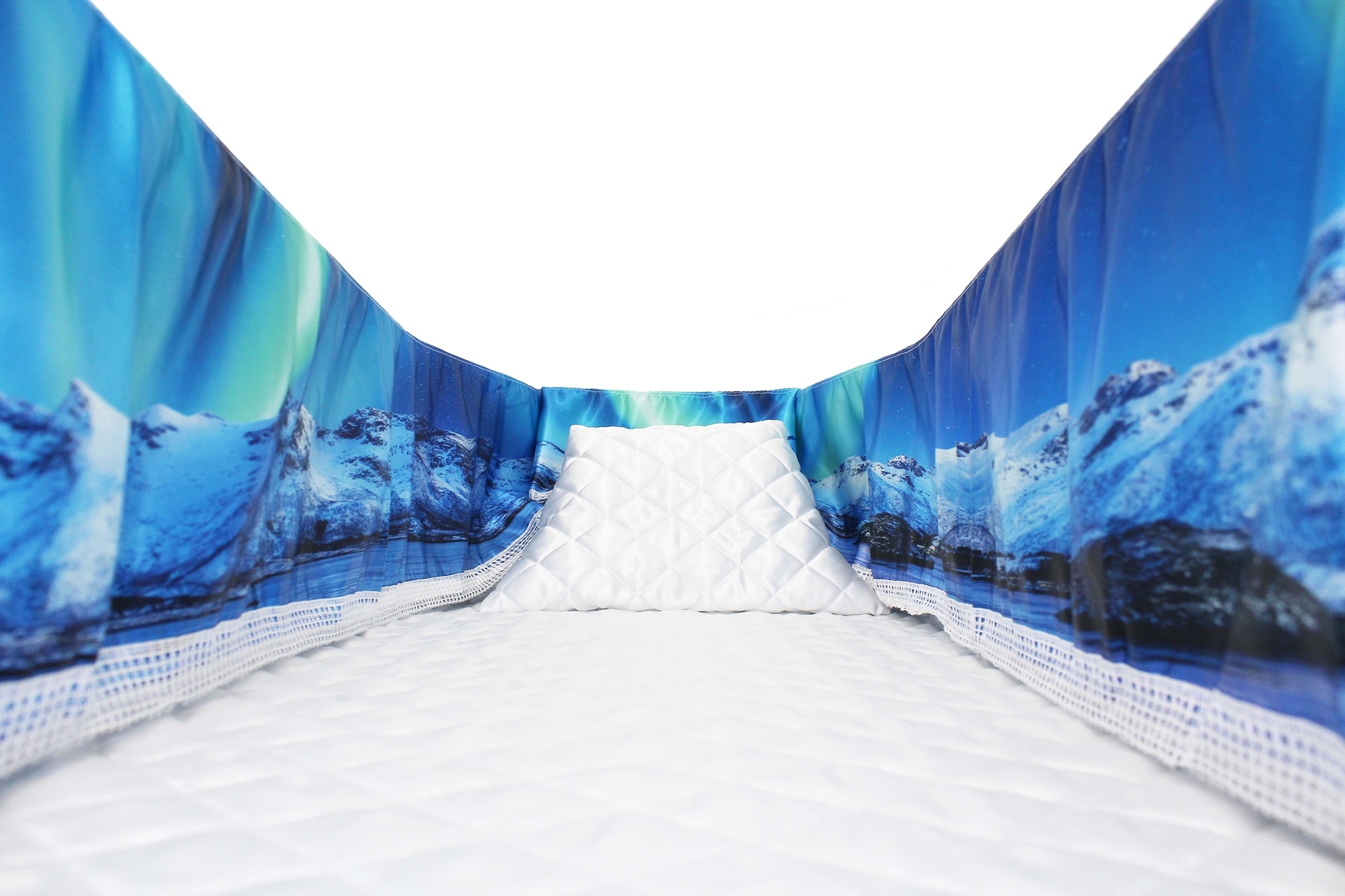 12-inch Printed Satin frill to be attached to the lip of the coffin/casket. Please note the image shows a mattress and pillow which are NOT included.