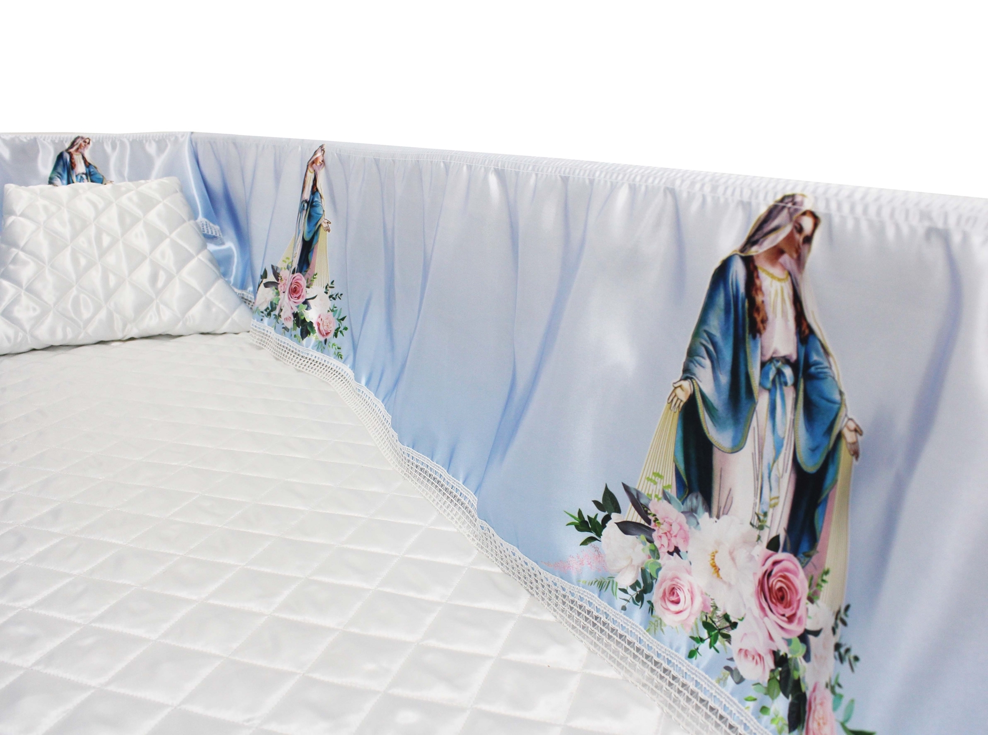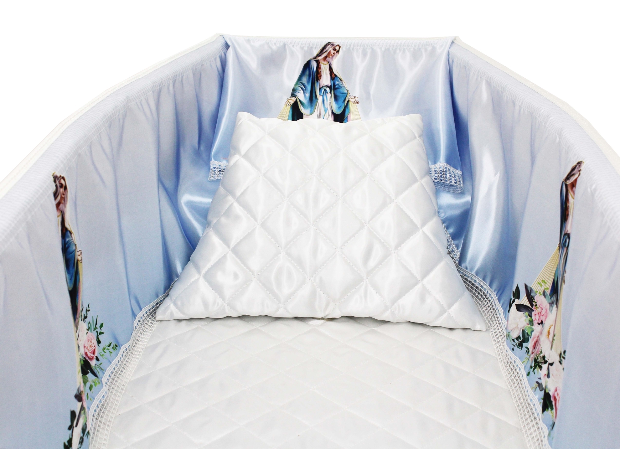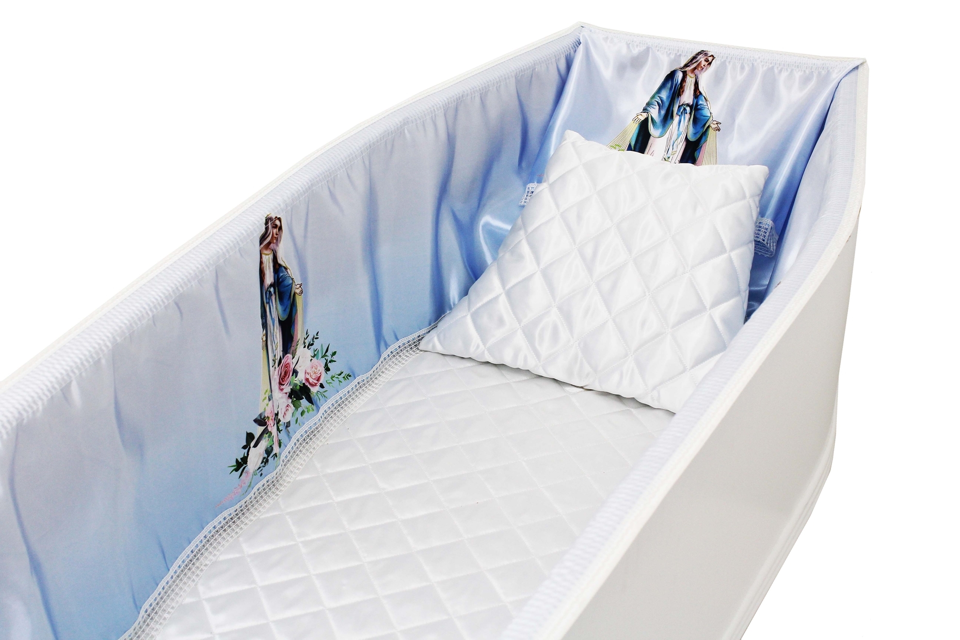 12-inch Printed Satin frill to be attached to the lip of the coffin/casket. Please note the image shows a mattress and pillow which are NOT included.
