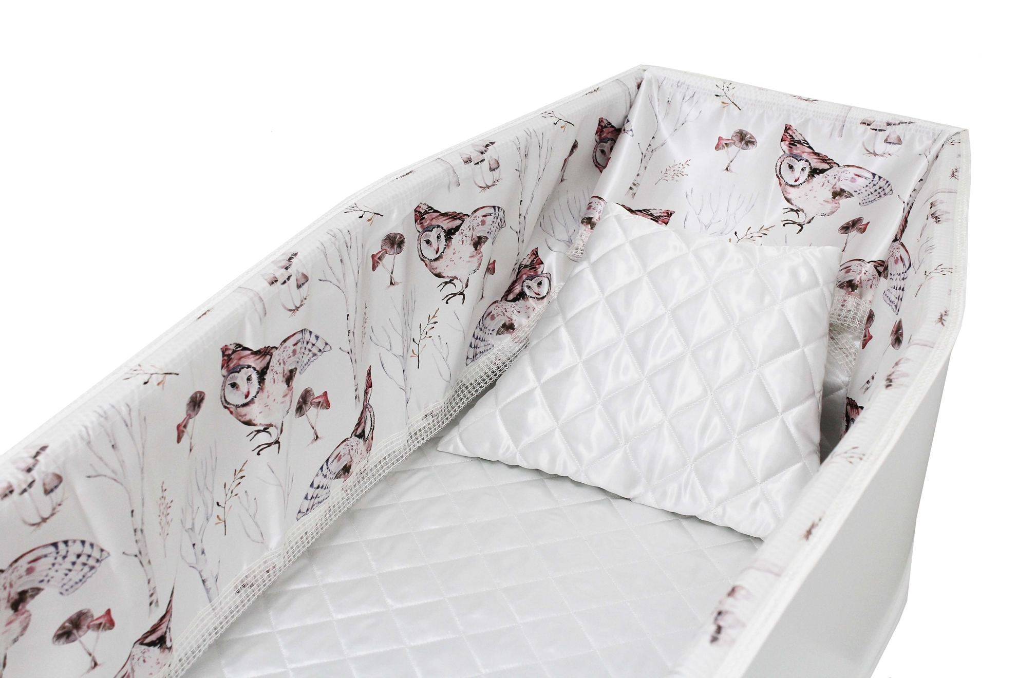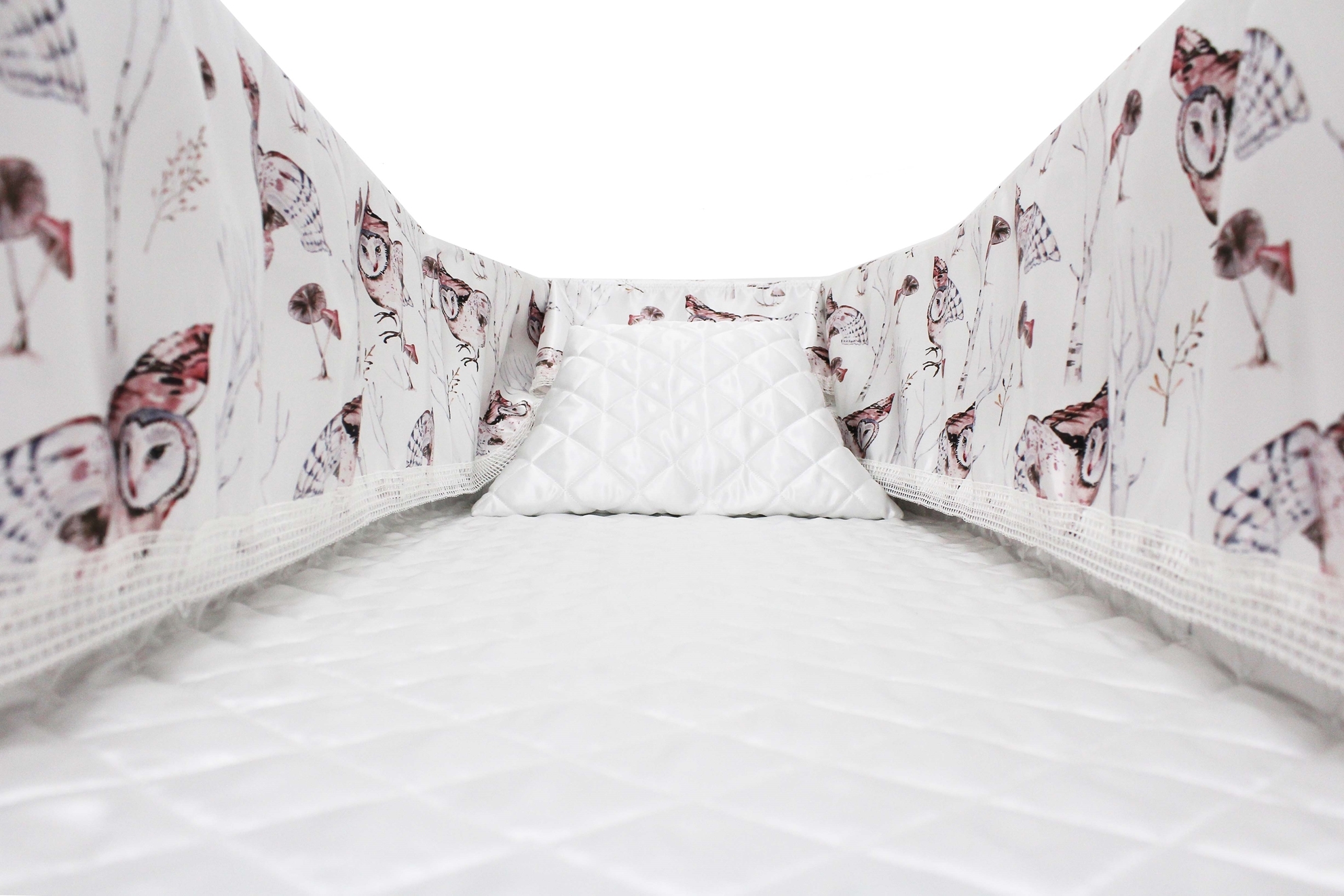 Luxury Satin 18-inch 2-way frill consisting of a 12-inch internal frill with an additional 6-inch exterior frill. The chosen design will be printed on the 18" 2-Way Frill. Please note the image shows a mattress and a pillow which are NOT included. Image is to illustrate style of Interior Only.