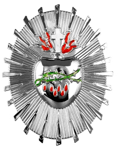 Plastic Painted Sacred Heart Ornament. Available in Brass or Nickel finish.