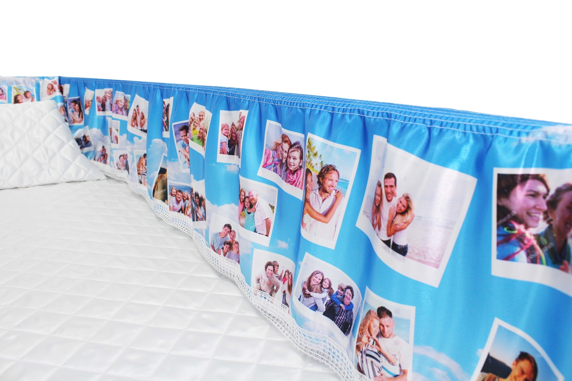 Luxury Satin 18-inch 2-way frill consisting of a 12-inch internal frill with an additional 6-inch exterior frill. The chosen design will be printed on the 18" 2-Way Frill. Please note the image shows a mattress and a pillow which are NOT included. Image is to illustrate style of Interior Only.