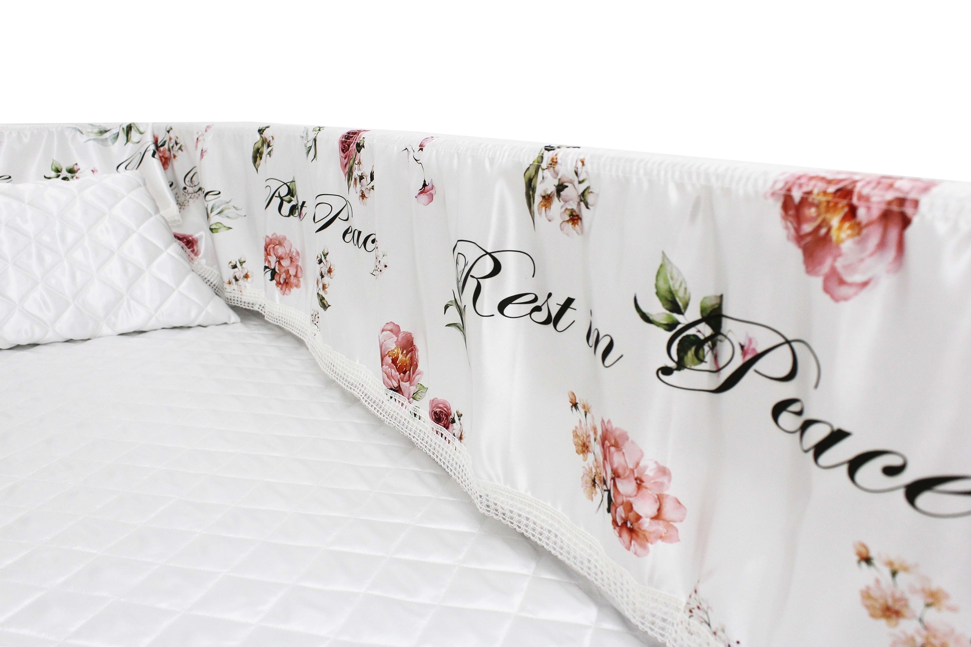 12-inch Printed Satin frill to be attached to the lip of the coffin/casket. Please note the image shows a mattress and pillow which are NOT included.