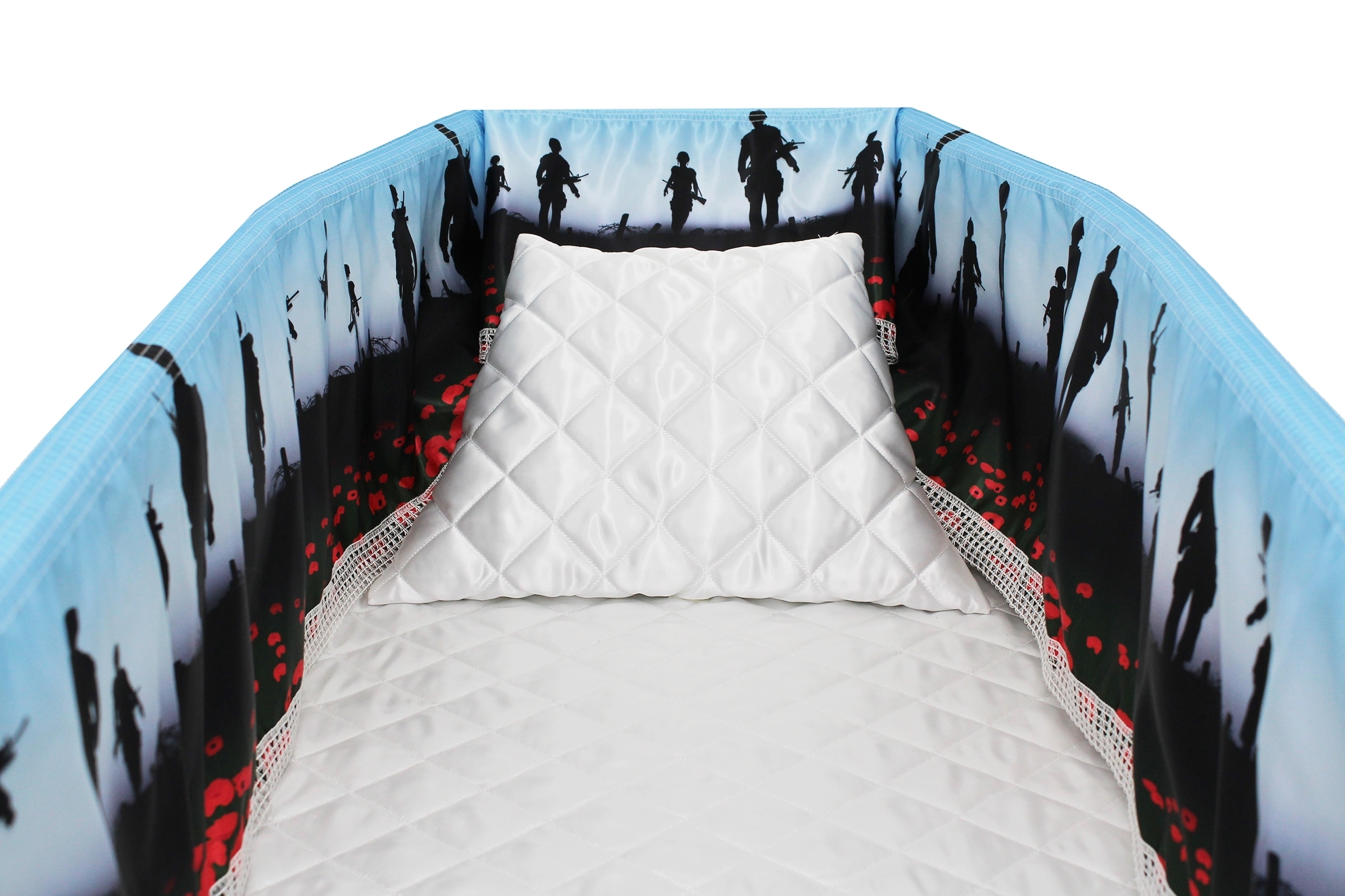 12-inch Printed Satin frill to be attached to the lip of the coffin/casket. Please note the image shows a mattress and pillow which are NOT included.