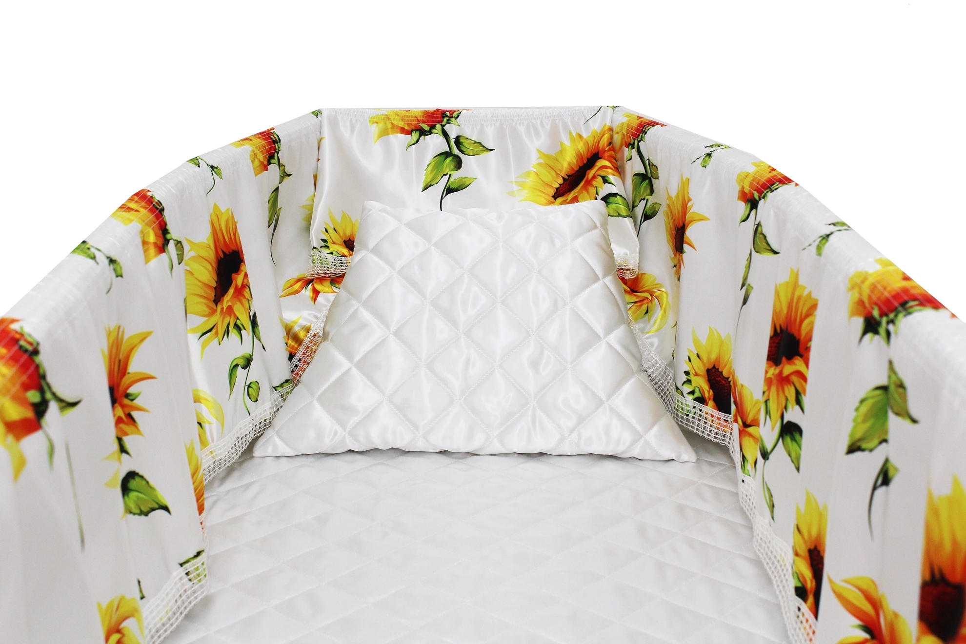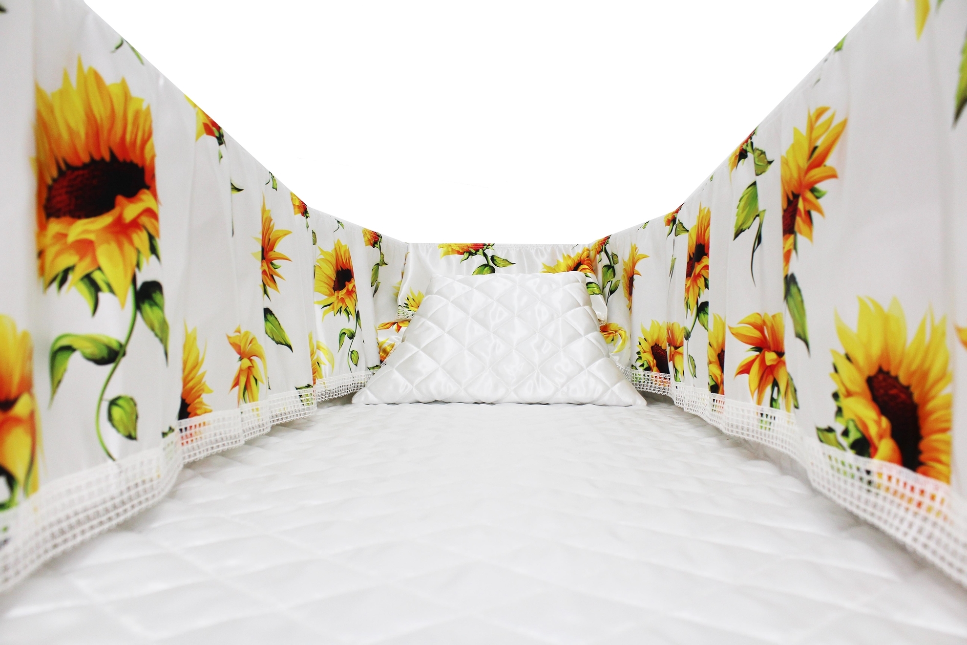 Luxury Satin 18-inch 2-way frill consisting of a 12-inch internal frill with an additional 6-inch exterior frill. The chosen design will be printed on the 18" 2-Way Frill. Please note the image shows a mattress and a pillow which are NOT included. Image is to illustrate style of Interior Only.