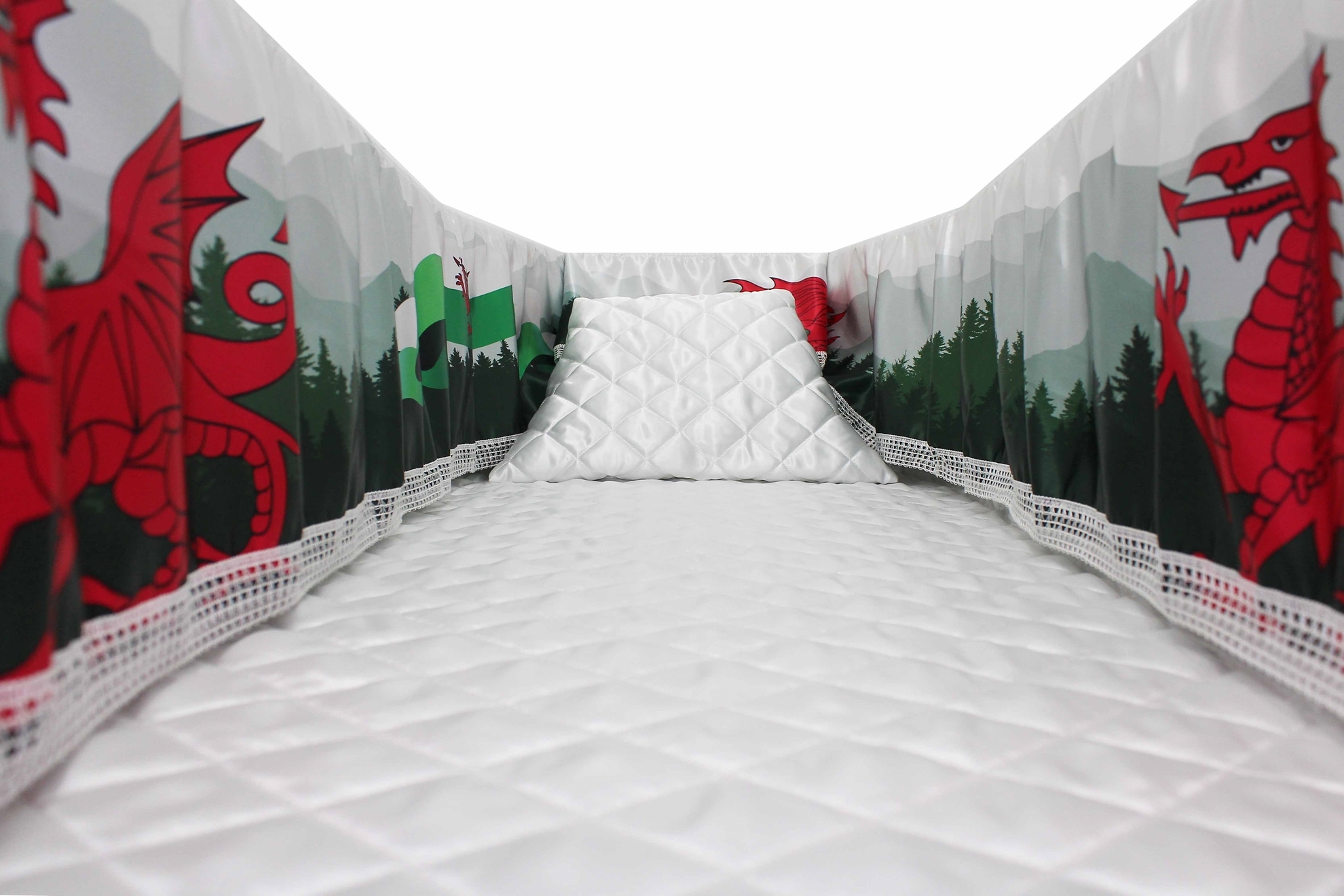 A cost effective satin elasticated all in one coffin suite. Making it quick and simple to fit. The chosen design will be printed on the Anna.