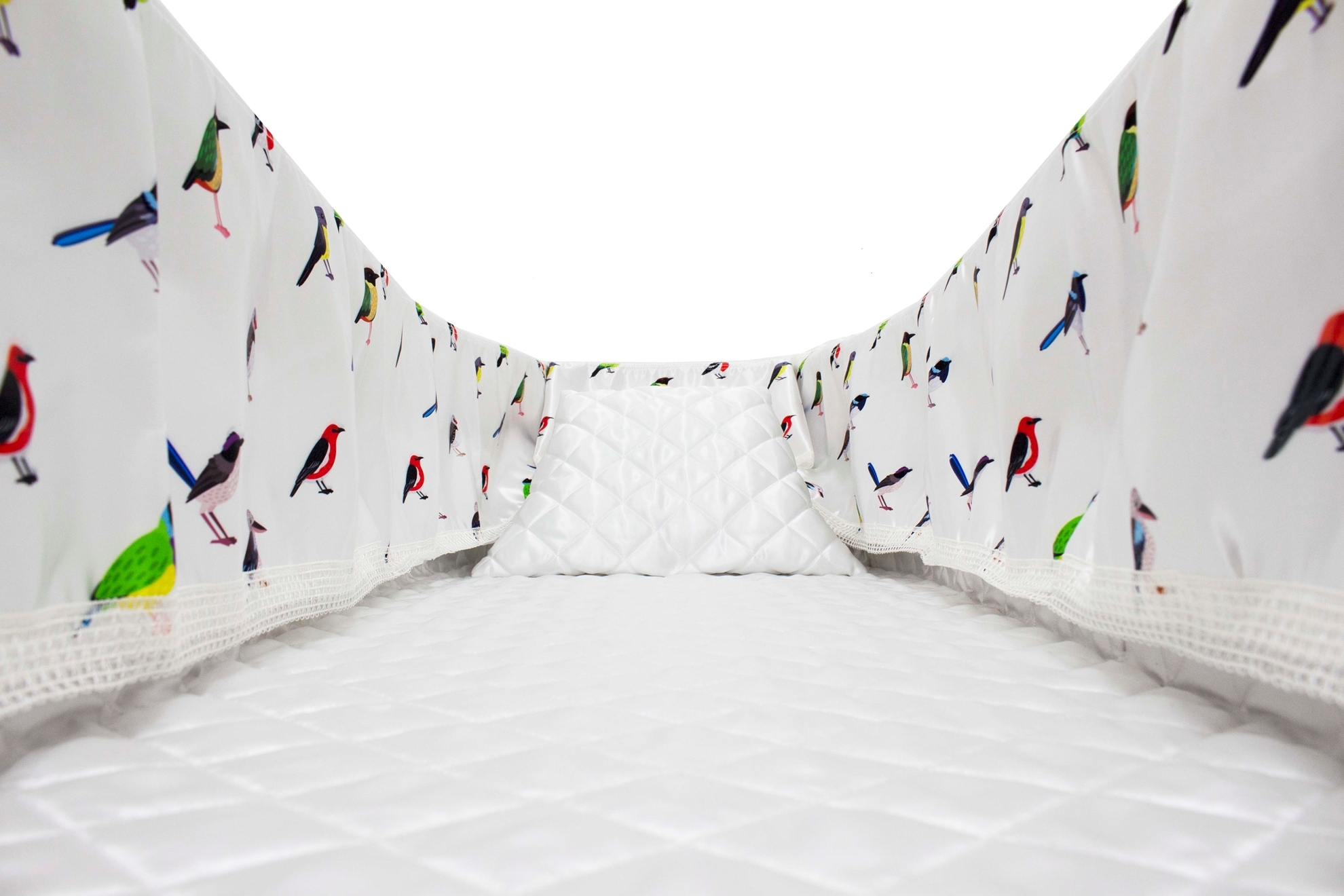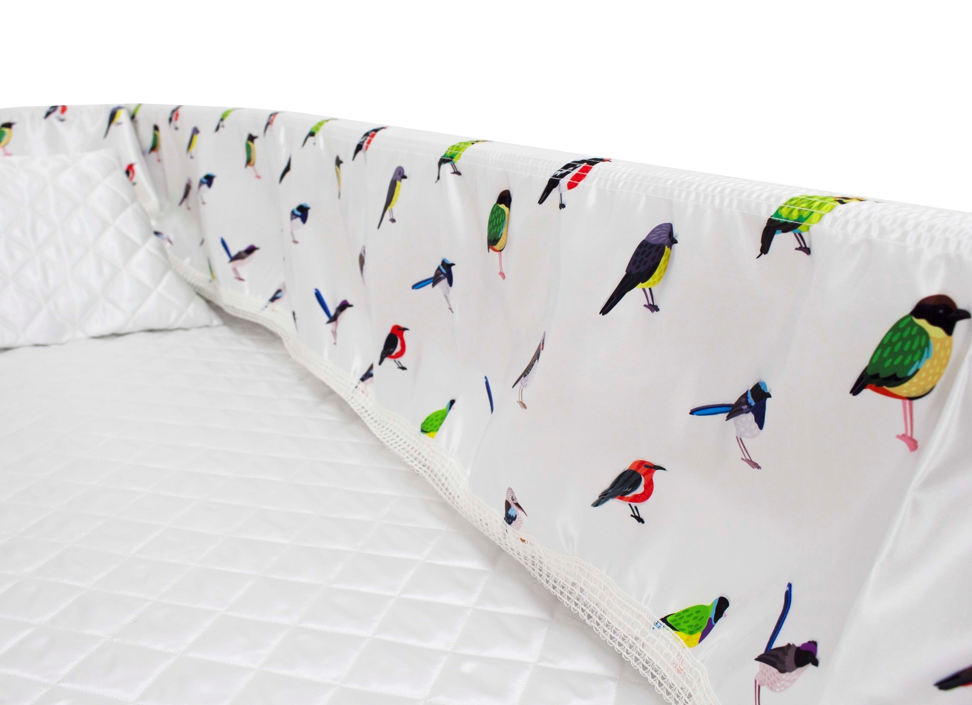 Luxury Satin 18-inch 2-way frill consisting of a 12-inch internal frill with an additional 6-inch exterior frill. The chosen design will be printed on the 18" 2-Way Frill. Please note the image shows a mattress and a pillow which are NOT included. Image is to illustrate style of Interior Only.